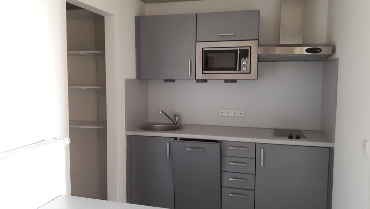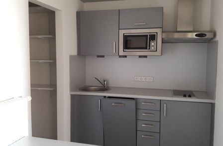 Eine kleine Einbauküche, Badezimmermöbel, ein mit Stellagen gefüllter Abstellraum sowie Außenjalousien sind schon in der Wohnung und werden gemeinsam mit einem Tiefgaragenstellplatz und einem Kellerabteil mitvermietet.