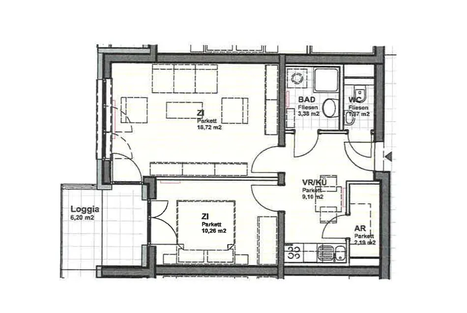 (Wohnung, Tiefgaragenabstellplatz, Kellerabteil): EURO 735,–