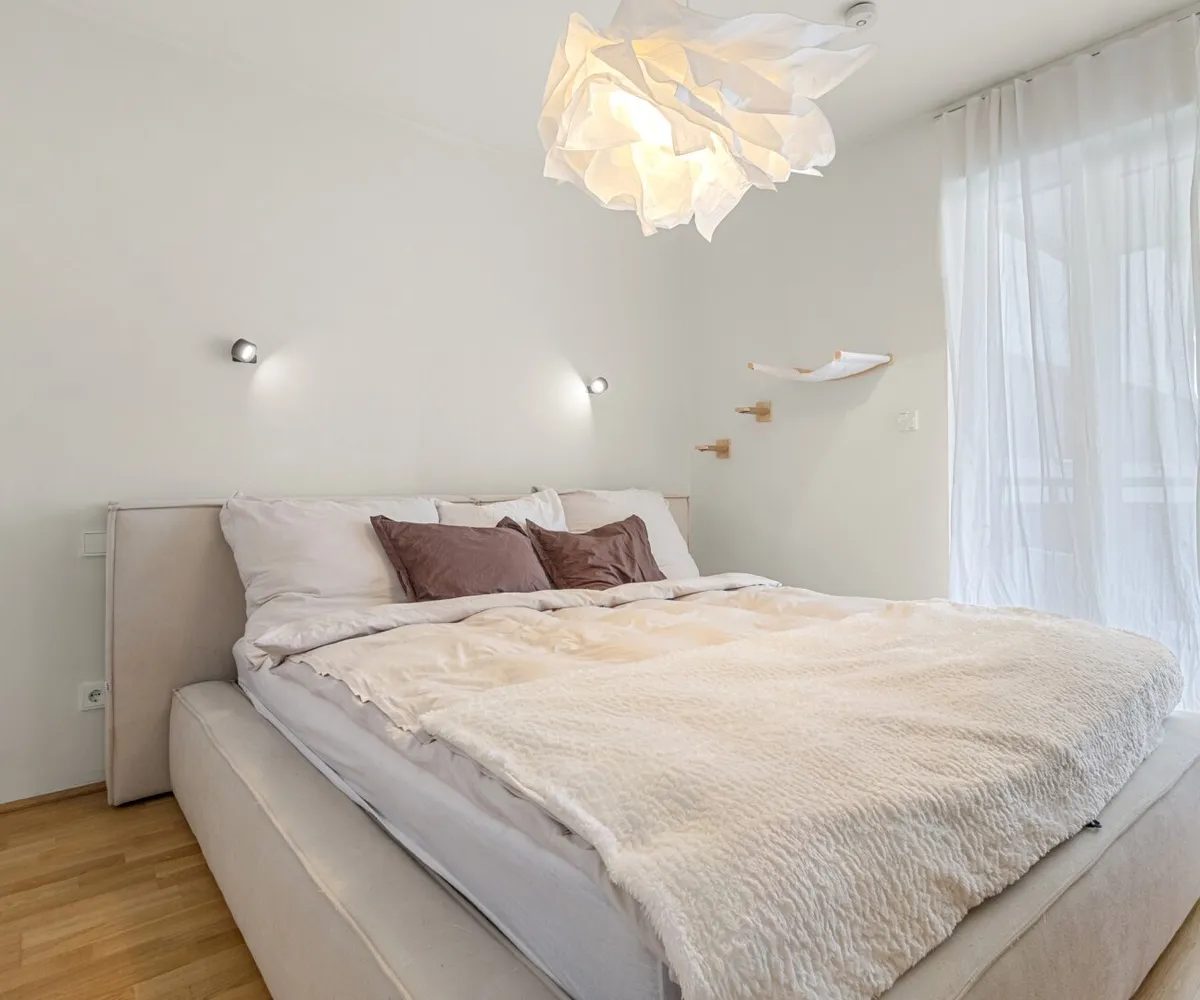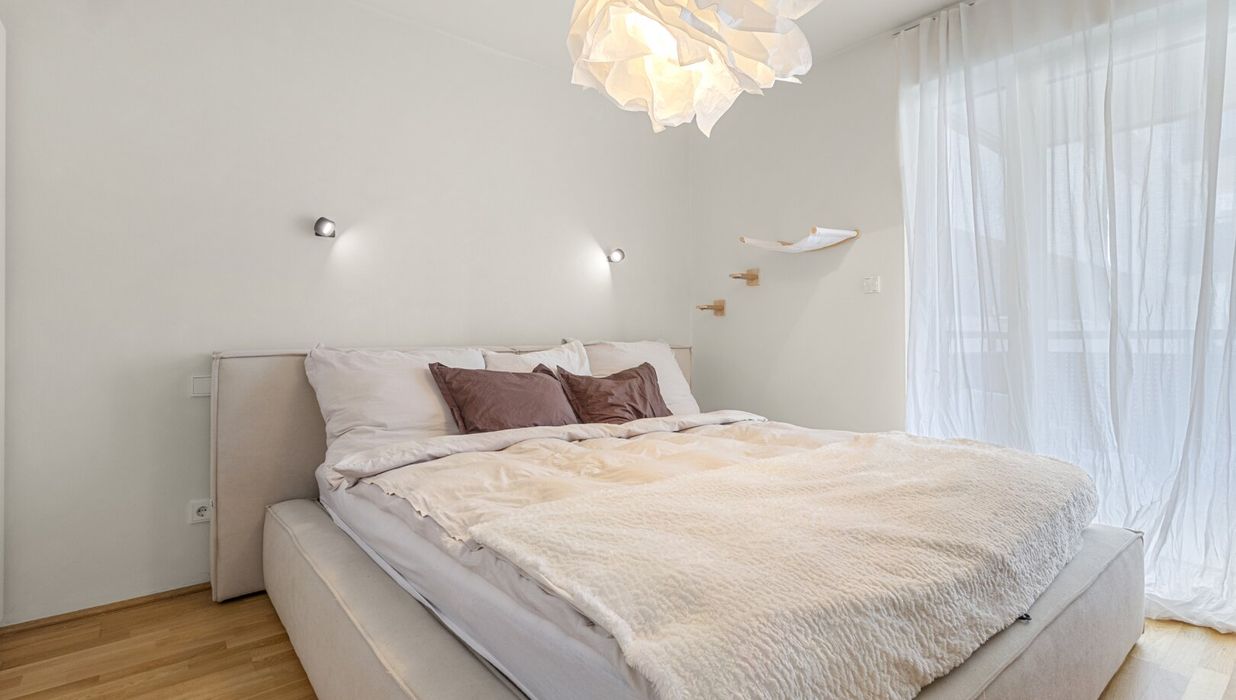 Ein ruhiges Schlafzimmer schafft Raum für Rückzug und Erholung.