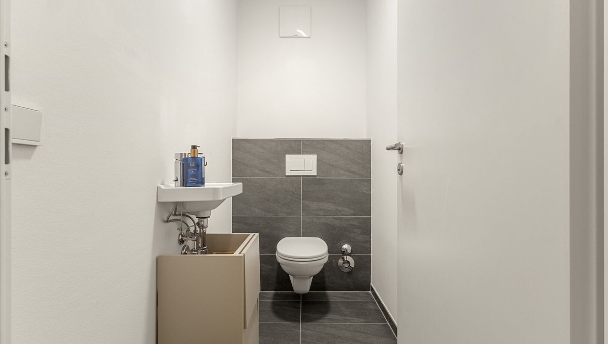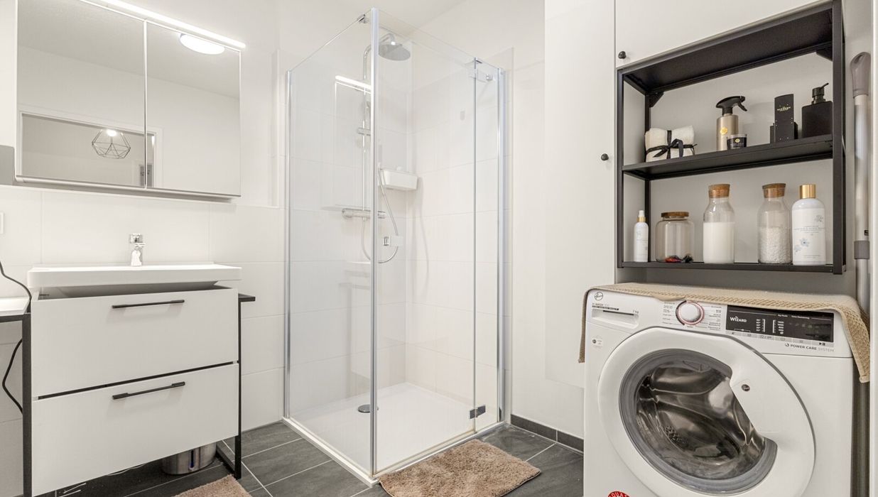 Ein weiteres Highlight ist das moderne Badezimmer mit Dusche und dem separaten WC.
