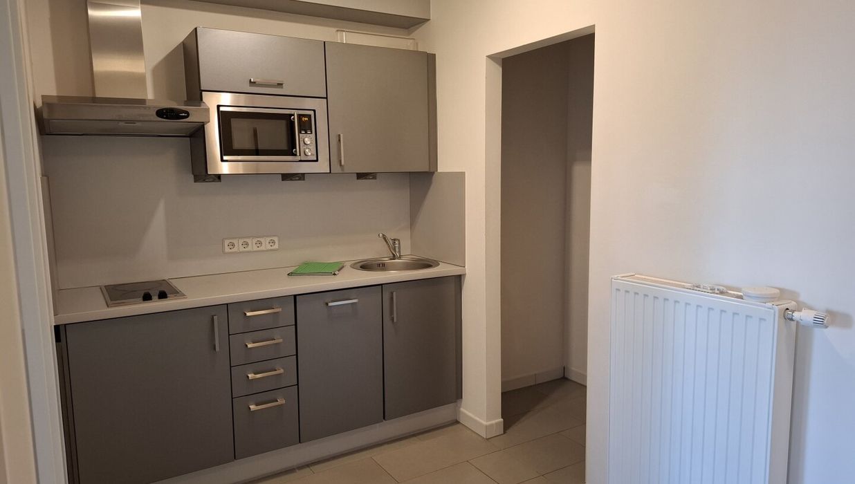 Die Wohnung verfügt über eine kompakte Einbauküche, Badezimmermöbel, einen Abstellraum mit Regalsystem sowie Außenjalousien. Ein Autoabstellplatz und ein Kellerabteil sind im Mietumfang enthalten.