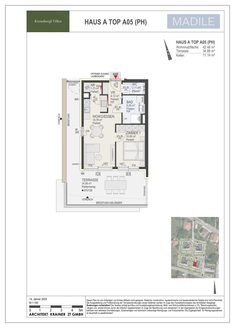 Am Fuße des Kreuzbergl, in St Martin, entsteht eine moderne und ansprechende Wohnanlage, die aus 4 Gebäuden mit jeweils 5 Wohneinheiten besteht.