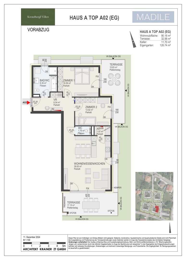Das äußere Design der Gebäude fügt sich harmonisch in das ländliche Ortsbild ein, wobei hochwertige Materialien verwendet werden, die bereits von außen ein behagliches Wohngefühl vermitteln.
