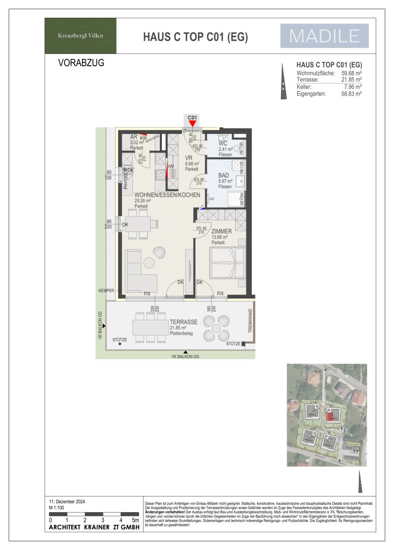 Das äußere Design der Gebäude fügt sich harmonisch in das ländliche Ortsbild ein, wobei hochwertige Materialien verwendet werden, die bereits von außen ein behagliches Wohngefühl vermitteln.