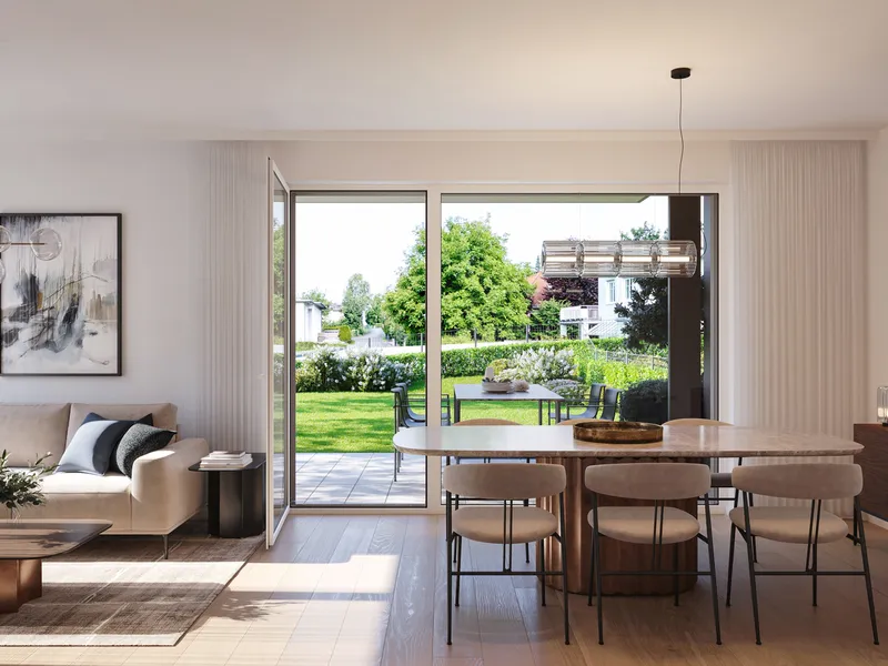 Luxus wird neu definiert mit lichtdurchfluteten Räumen mit Raumhöhen von bis zu 3,18 Metern und einer hochwertigen, modernen Ausstattung sowie barrierefreien Zugängen. Ein angenehmes Raumklima schaffen die Deckenkühlung und ein moderner Sonnenschutz. Ihr Auto können Sie ganz bequem in der Tiefgarage abstellen oder in einem begrünten Carport parken und ein Lift bringt Sie in Ihre Wohnetage.