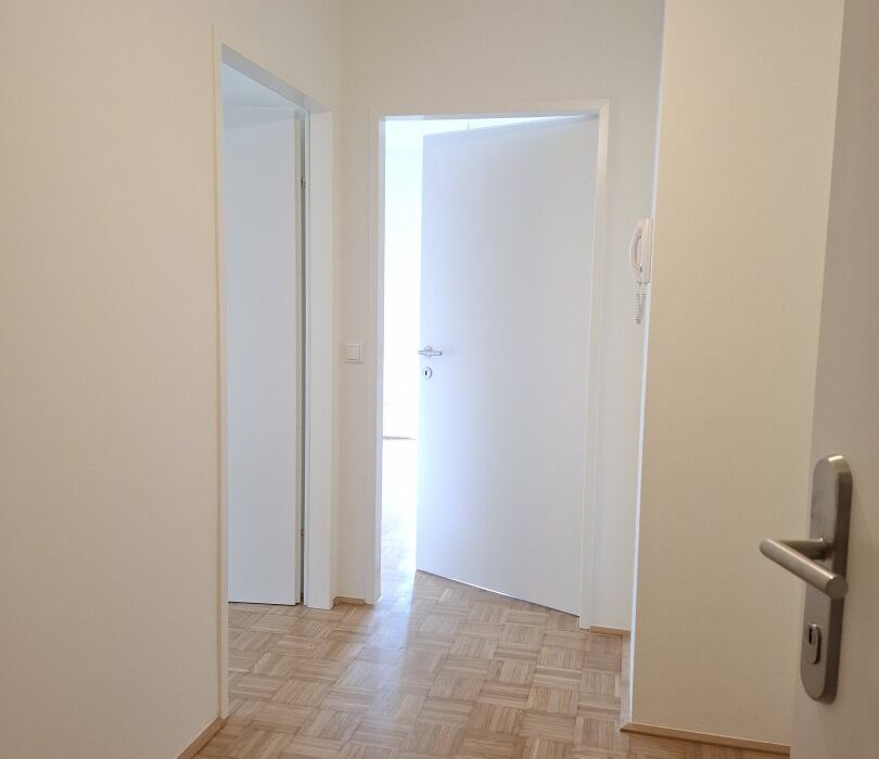 Die Wohnung wurde soeben renoviert: neue Türen, geschliffener Parkettboden, aufgewerteter Holzboden am Balkon sowie eine neue Küche und neues Badmobiliar. Der helle Wohn-Essbereich mit Zugang zum überdachten Balkon lädt zum Entspannen ein. Ein Schlafzimmer bietet eine angenehme Rückzugsmöglichkeit.