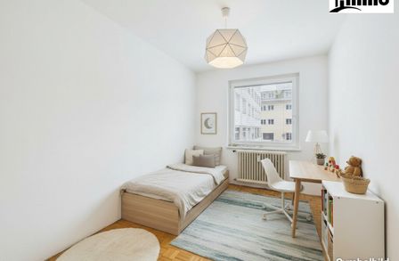 Großzügiger Vorraum, vier gut geschnittene Zimmer, separate Küche, Badezimmer mit Dusche, extra WC sowie westseitige Loggia – die durchdachte Raumstruktur ermöglicht sowohl klassische Wohnnutzung als auch eine professionelle Nutzung als Büro, Kanzlei oder Praxis.