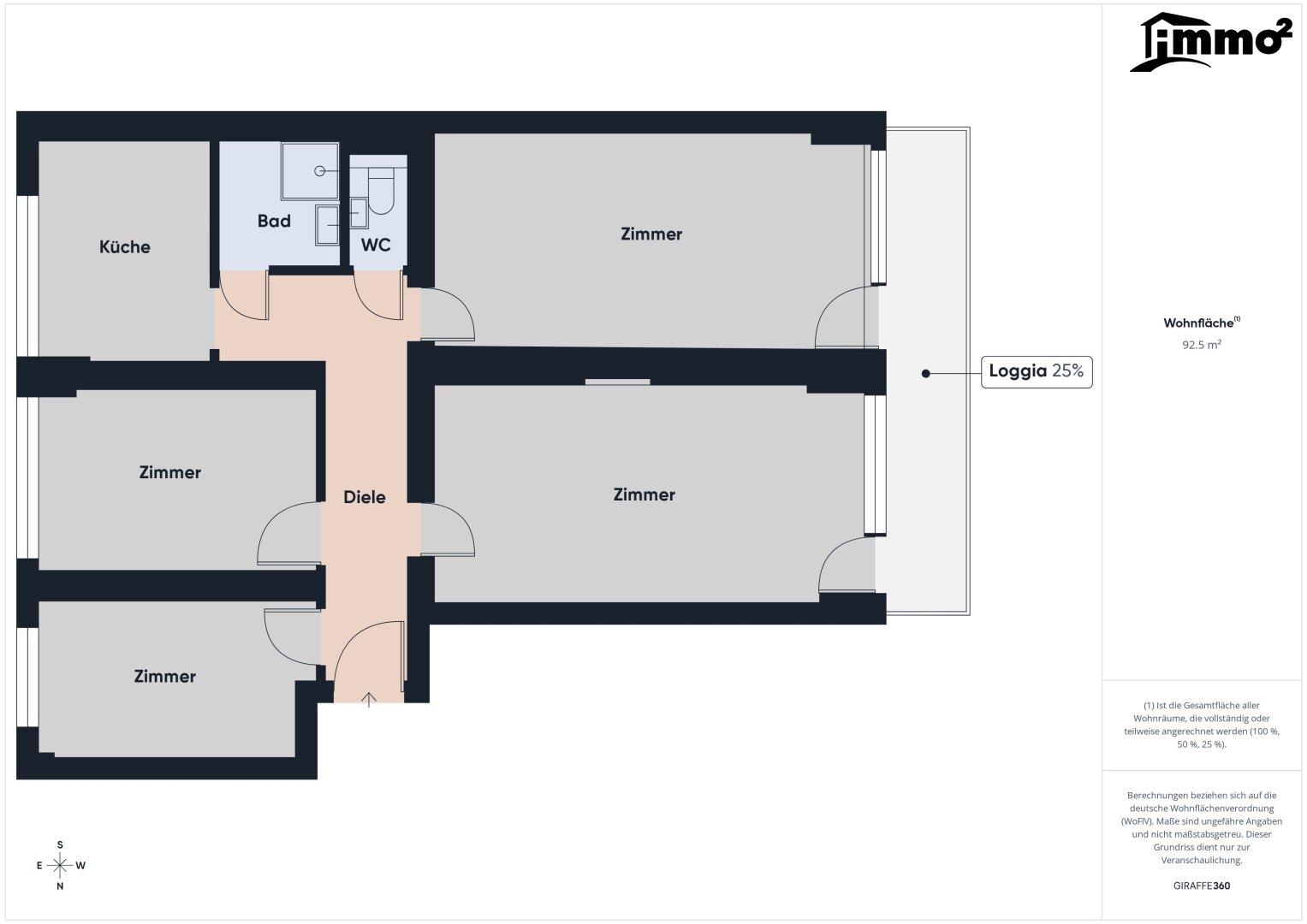 Nutzfläche inkl Loggia: ca. 92,5 m² | Zimmer: 4