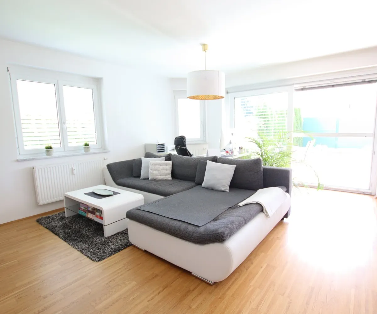 Wohn-/Nutzfläche ca.: 91,89m² inkl. ca. 7,99m² Loggia plus ca. 9,17m² Südterrasse, plus ca. 400m² XL-Eigengarten.