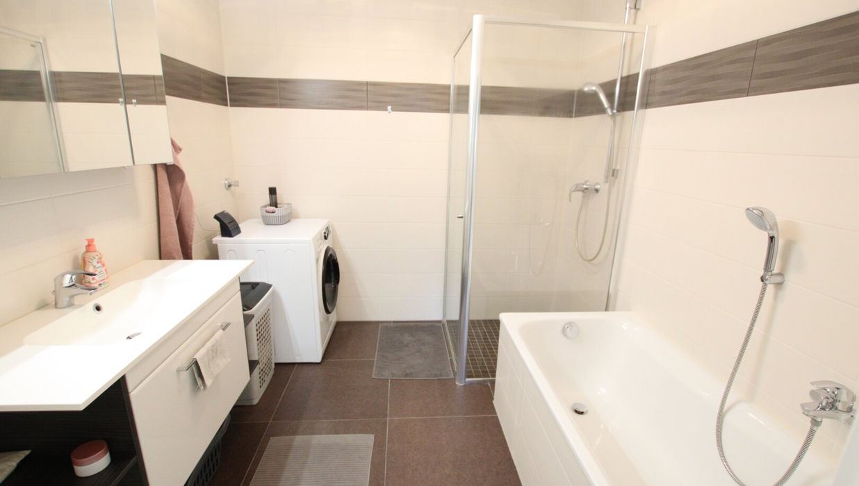 Bad: Bad mit Badewanne und barrierefreier Dusche und ein WC extra