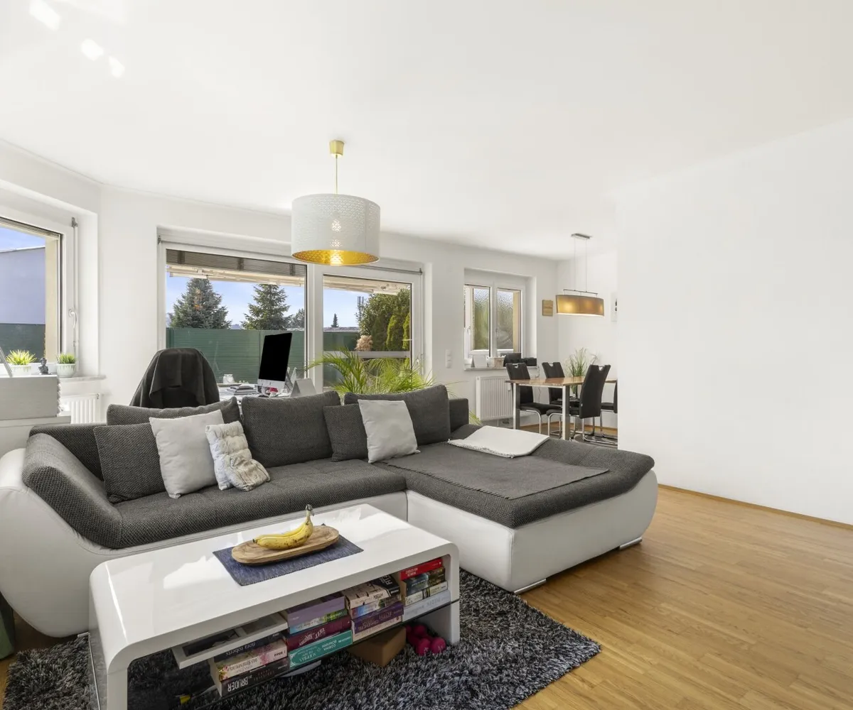 Wohn-/Nutzfläche ca.: 91,89m² inkl. ca. 7,99m² Loggia plus ca. 9,17m² Südterrasse, plus ca. 400m² XL-Eigengarten.