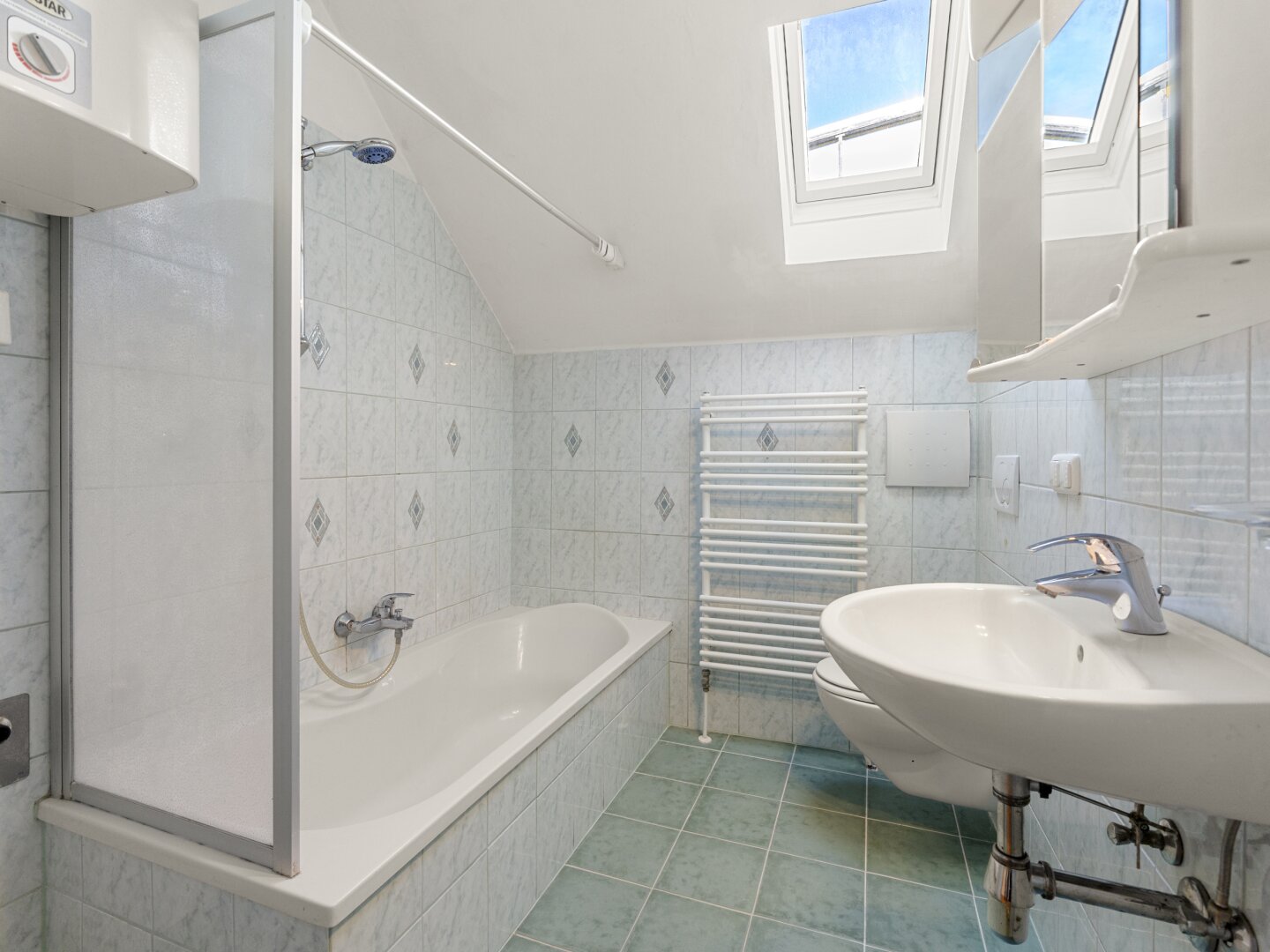 Bad: Bad mit Badewanne, WC und Fenster