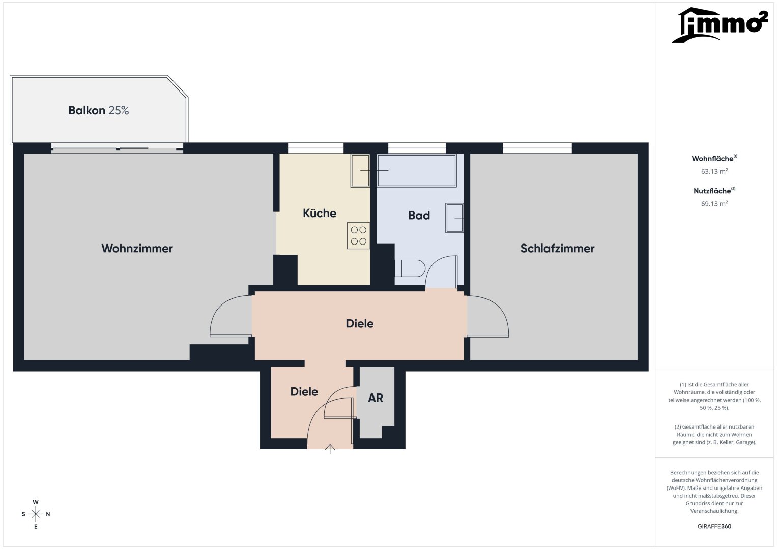 Wohnfläche: ca. 63,13 m² | Nutzfläche: ca. 69,13 m² inkl. Loggia