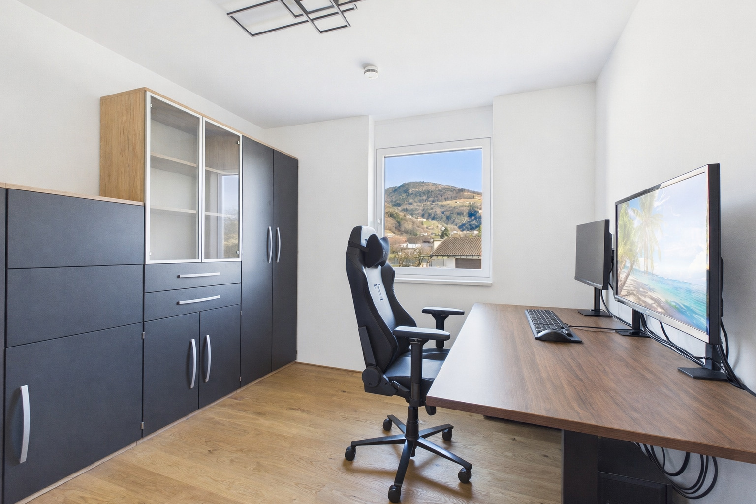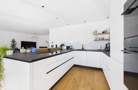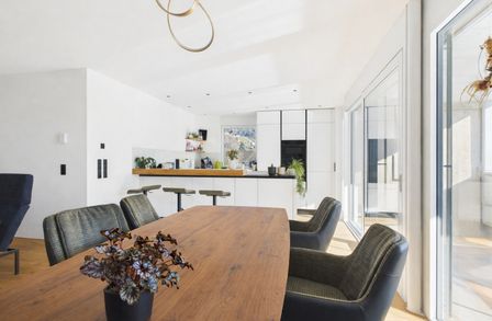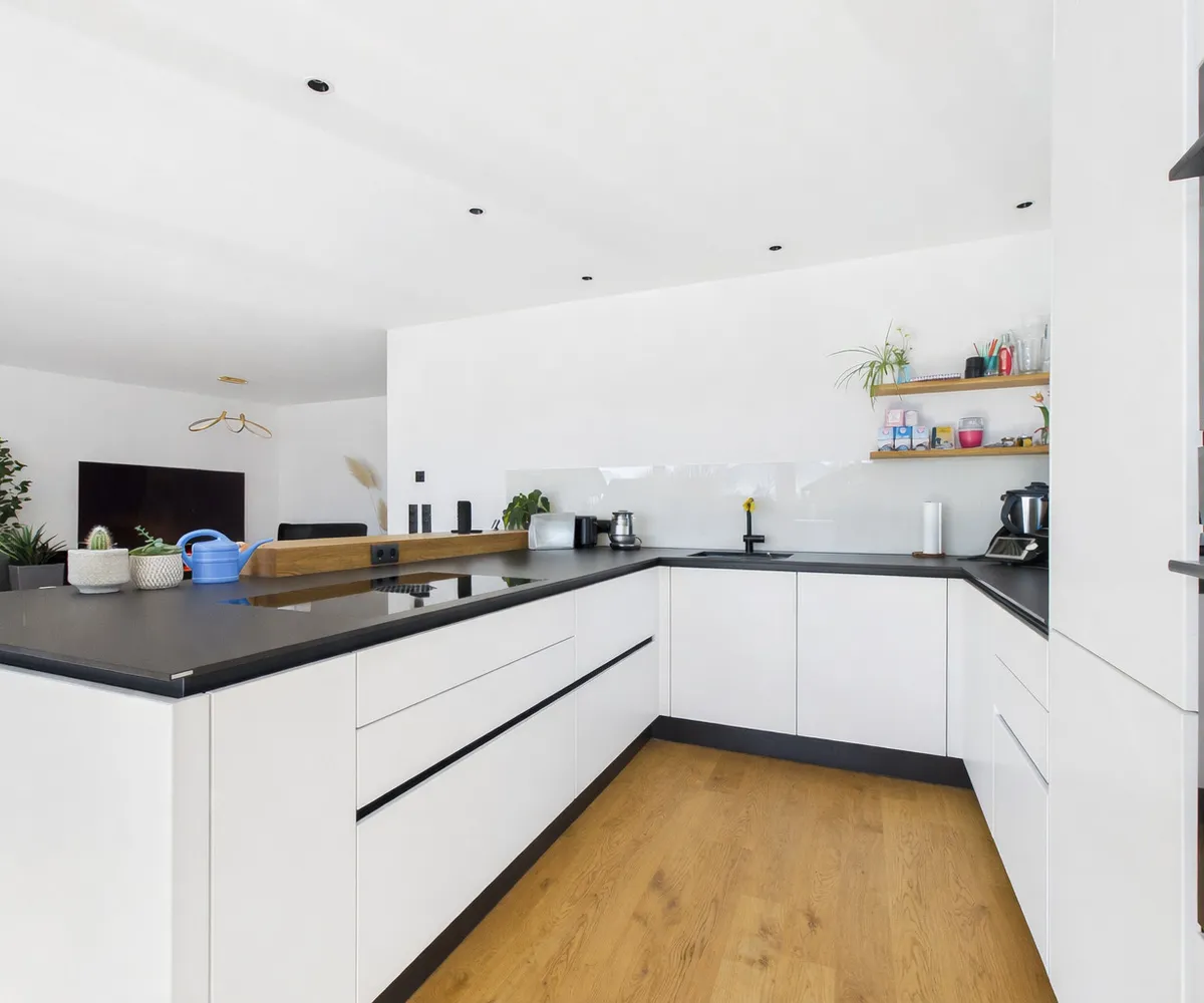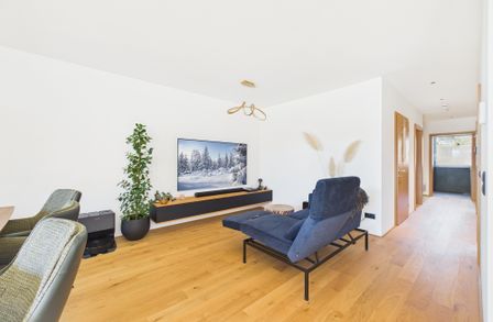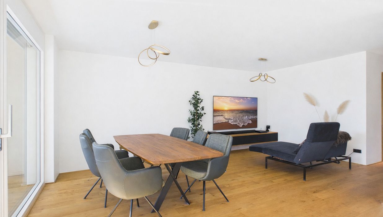 Genießen Sie das helle und freundliche Wohnambiente mit einer modernen Wohnküche, die zum gemeinsamen Kochen und Verweilen einlädt. Die offene Gestaltung schafft eine einladende Atmosphäre, die perfekt für Familien oder Paare ist. Hochwertige Parkett- und Fliesenböden sorgen für ein angenehmes Wohngefühl, ergänzt durch eine energiesparende Fußbodenheizung, die für wohlige Wärme an kalten Tagen sorgt.