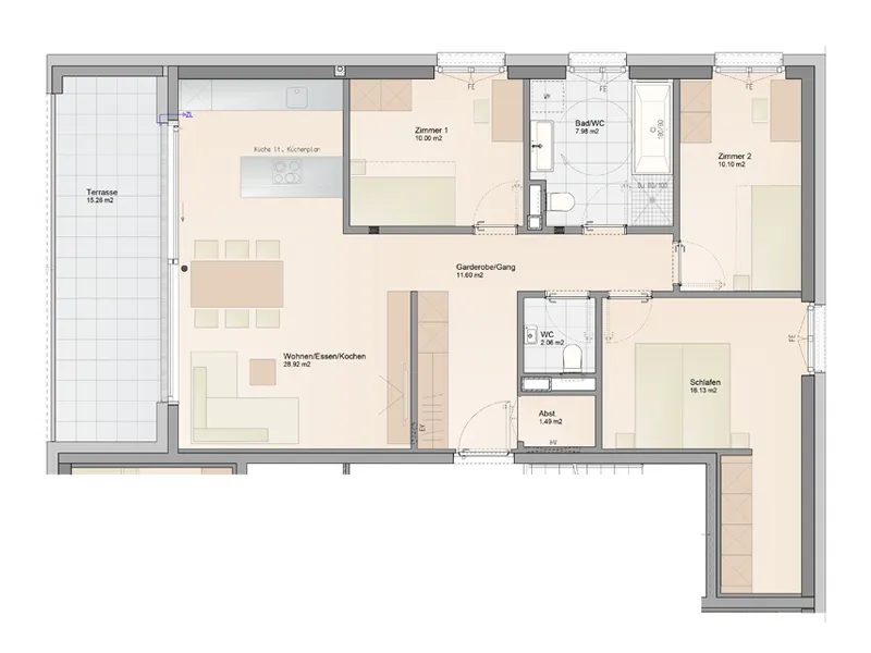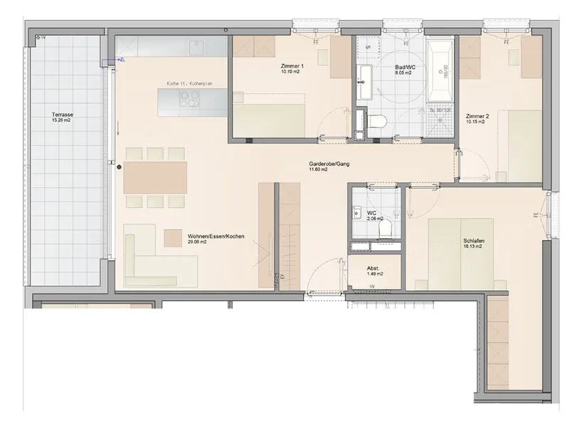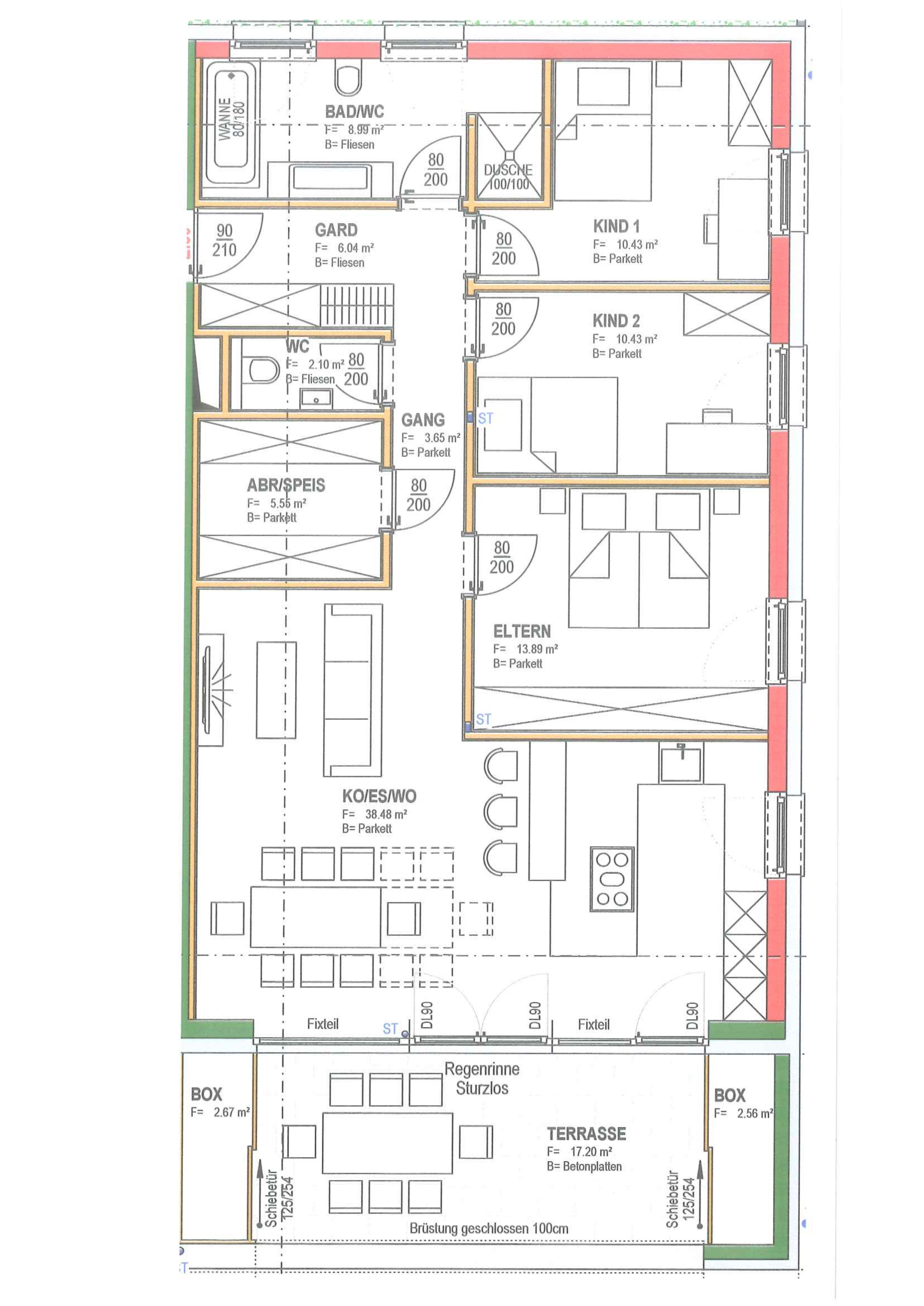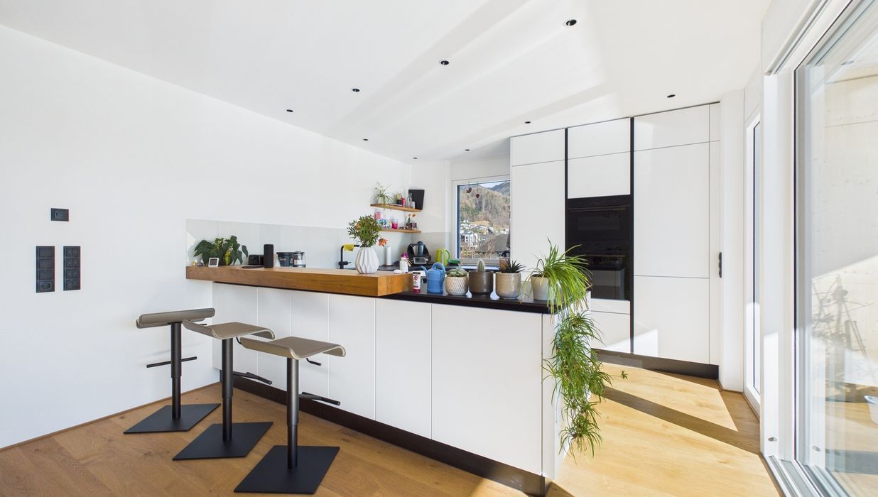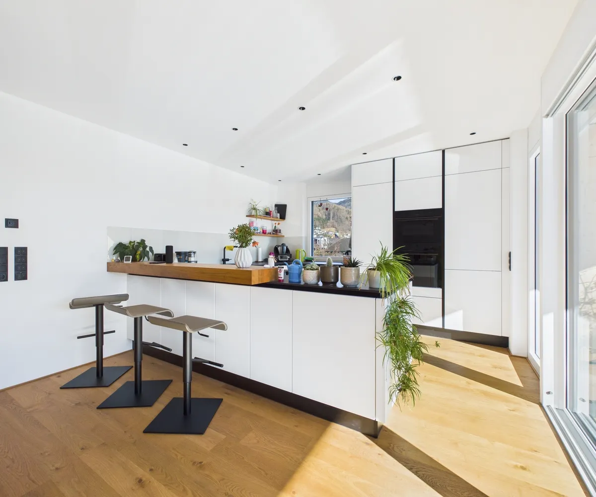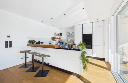 Genießen Sie das helle und freundliche Wohnambiente mit einer modernen Wohnküche, die zum gemeinsamen Kochen und Verweilen einlädt. Die offene Gestaltung schafft eine einladende Atmosphäre, die perfekt für Familien oder Paare ist. Hochwertige Parkett- und Fliesenböden sorgen für ein angenehmes Wohngefühl, ergänzt durch eine energiesparende Fußbodenheizung, die für wohlige Wärme an kalten Tagen sorgt.