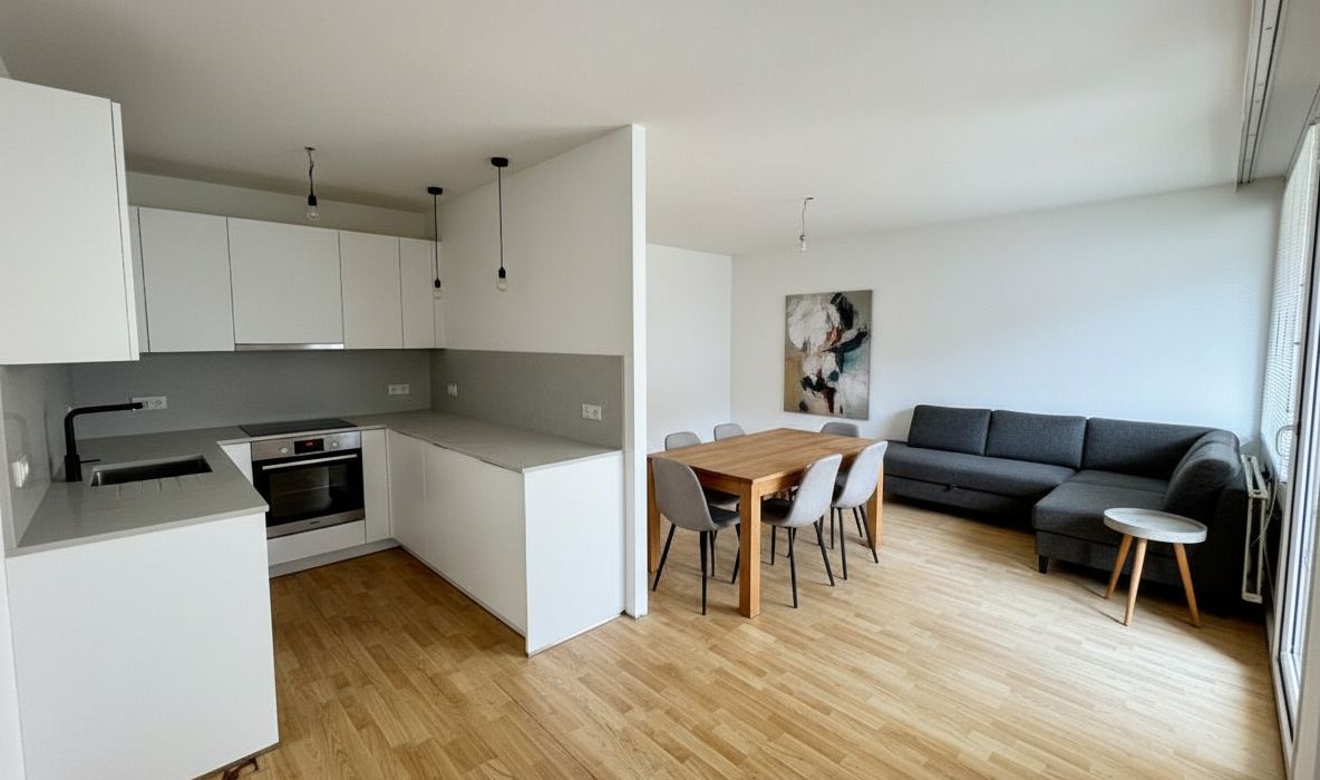 Bereits beim Betreten zeigt sich der klare, gut strukturierte Grundriss , der eine Vielzahl an Gestaltungsmöglichkeiten bietet. Der offene Wohn- und Küchenbereich bildet das Herzstück der Wohnung – ein großzügiger Raum, der zu kulinarischen Momenten, geselligem Beisammensein und entspannten Stunden einlädt. Von hier aus gelangen Sie auf die einladende Loggia, die einen harmonischen Blick ins Grüne freigibt und ein Gefühl von Naturverbundenheit vermittelt.