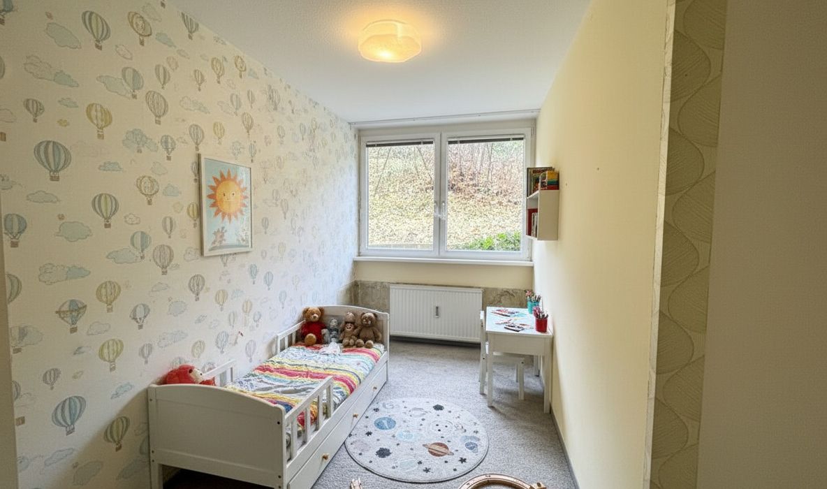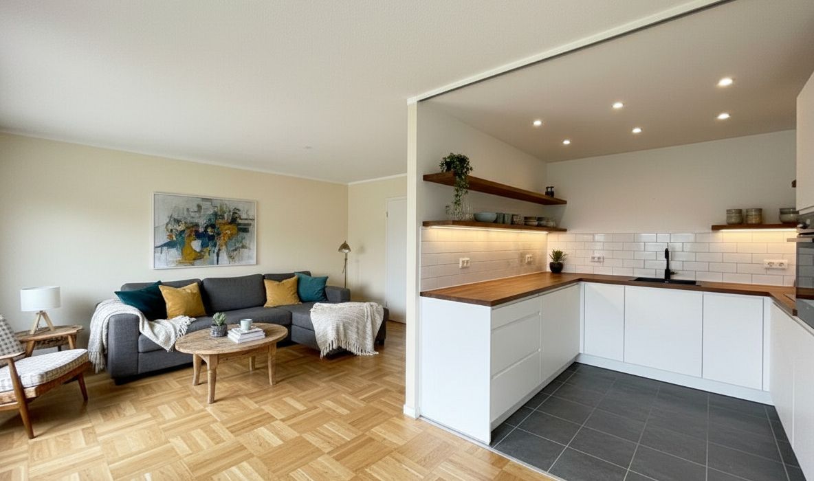 Die dargestellten möblierten Räume sind KI-generierte Visualisierungen und dienen lediglich der Veranschaulichung möglicher Einrichtungskonzepte . Die Möblierung und Sanierung ist nicht im Kaufpreis enthalten .