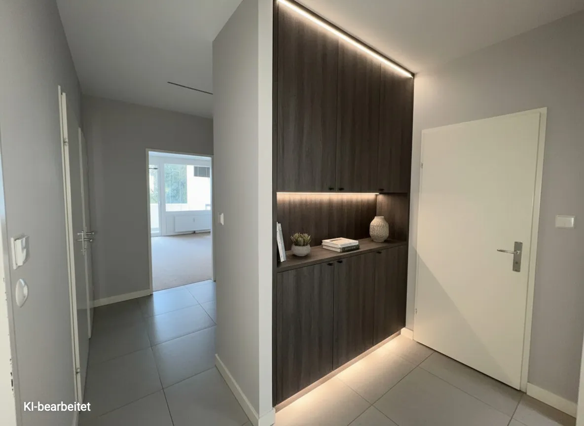 Die dargestellten möblierten Räume sind KI-generierte Visualisierungen und dienen lediglich der Veranschaulichung möglicher Einrichtungskonzepte . Die Möblierung und Sanierung ist nicht im Kaufpreis enthalten .