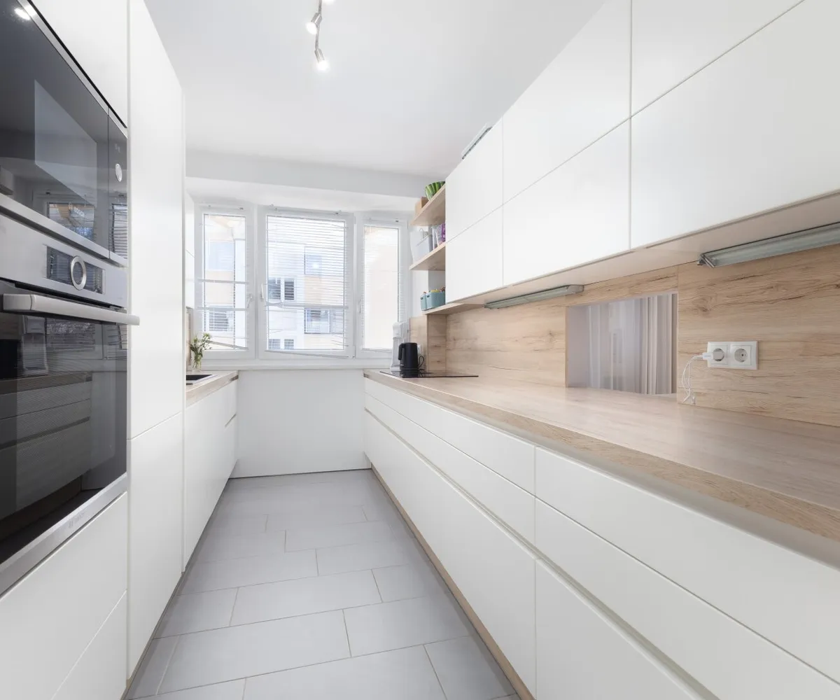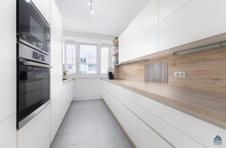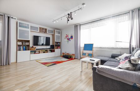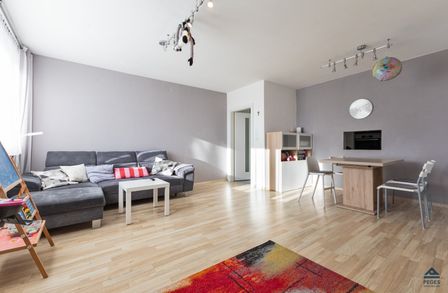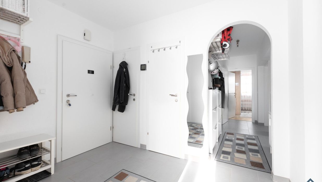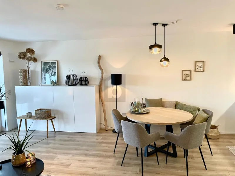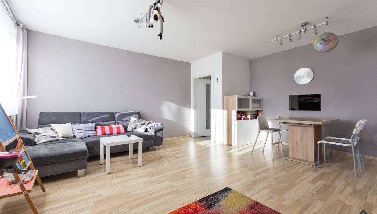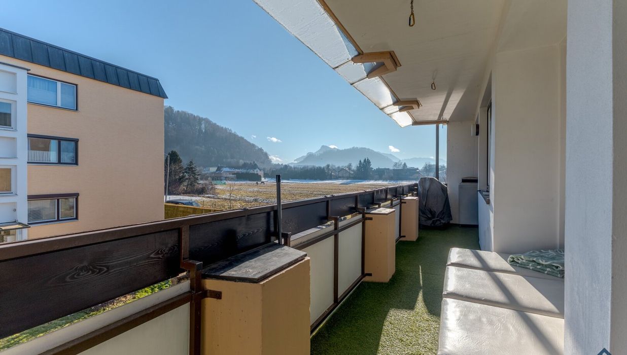 Vom freundlich-hellen Vorraum gelangt man in alle weiteren Räumlichkeiten (-zentral begehbar). Das großzügig, lichtdurchflutete Wohn-/Esszimmer ist mit großen Fensterelementen versehen. Eine kleine Durchreiche verbindet zudem die separate Küche, eingerichtet mit einer hellen Einbauküche samt allen Geräten (mit BORA-Kochfeldabzugssystem, Dampfgarer, etc). Vom Wohnzimmer (sowie den beiden Kinderzimmern) gelangt man auf den sonnigen Balkon mit südlicher Ausrichtung , welcher zum Entspannen zuhause und Sonnengenuss pur einlädt - mit herrlichem Bergblick (Untersberg).
