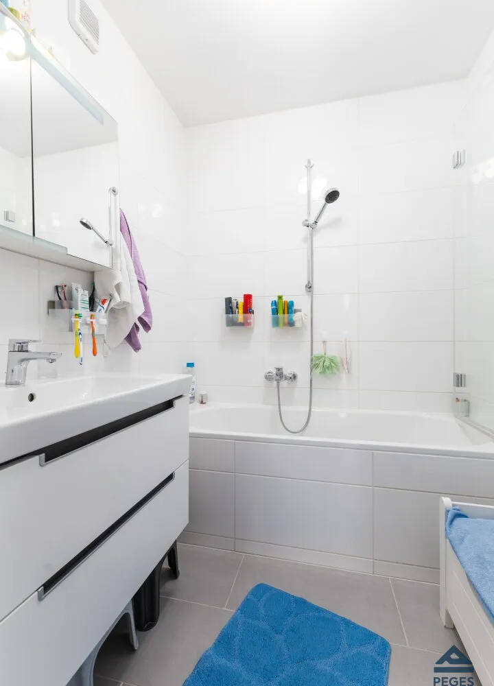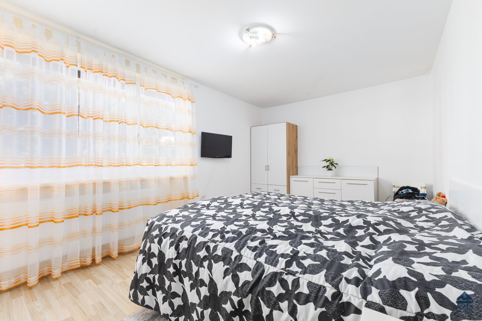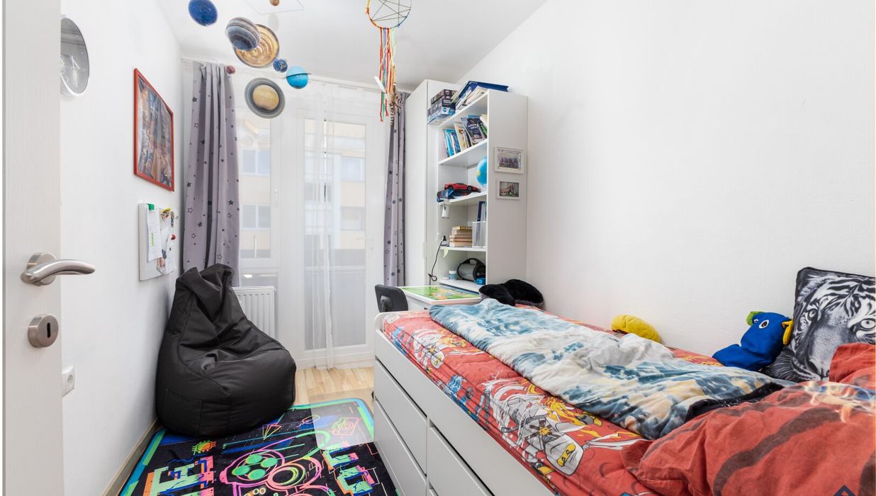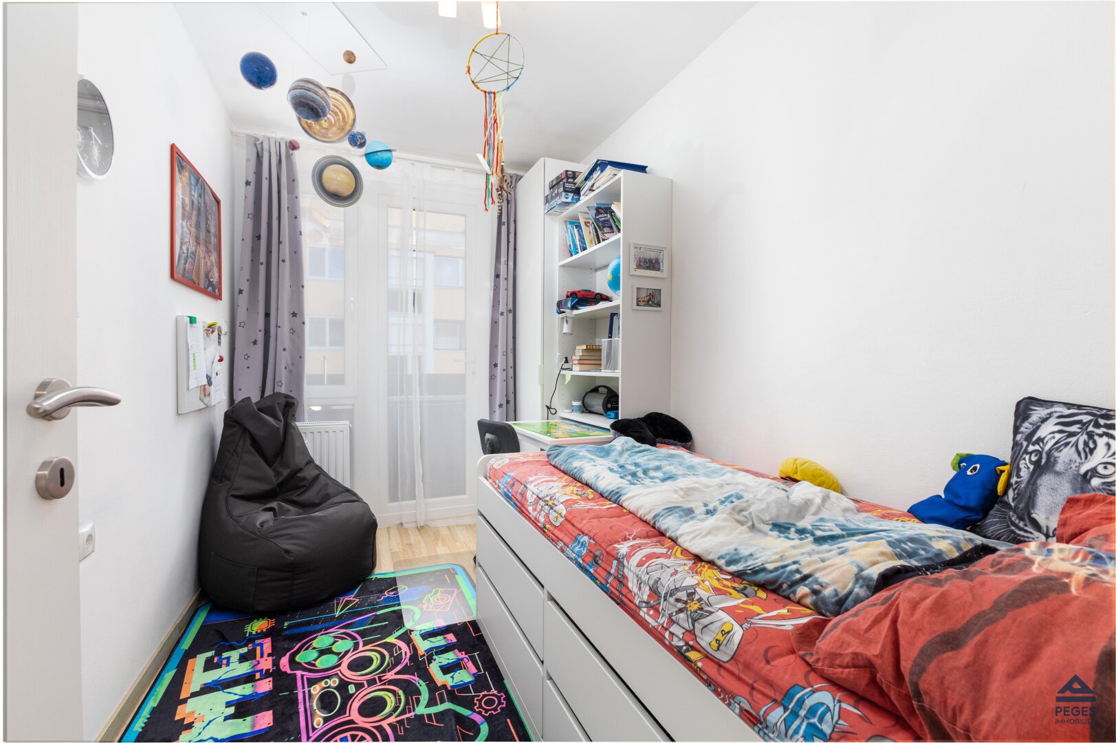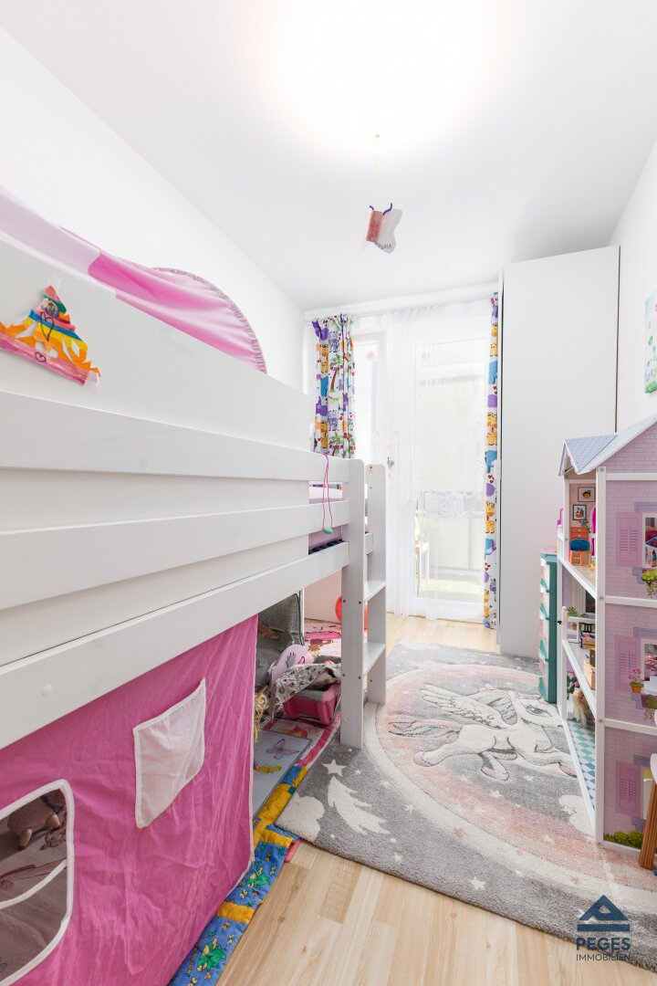 Das Schlafzimmer mit perfektem Schnitt bietet die ideale Schlaf- und Ruheumgebung . Die beiden weiteren Zimmer können als Kinderzimmer oder Büro genutzt werden. Parkettböden in den Wohnräumen und eine gepflegte Ausstattung (elektrische Jalousien in WZ und SZ, usw.) sorgen neben der angenehm hellen Gestaltung für Wohlfühlambiente . Das Bad ist mit einer Badewanne ausgestattet. Das WC ist separat und verfügt zudem über ein Handwaschbecken. Ein Waschmaschinen-Anschluss befindet sich im praktischen Abstellraum .