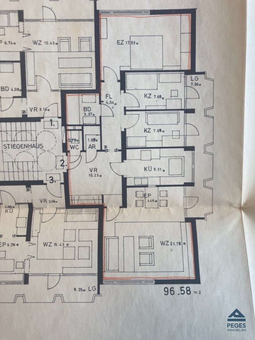 Gesucht, gefunden - diese im 1. Obergeschoß (ohne Lift) des gepflegten, kleineren Wohnhauses gelegene 4-Zimmer-Wohnung mit durchdachtem Grundriss verfügt über eine Wohnfläche von ca. 88,34 m² zuzüglich gemütlichem Balkon mit ca. 7,96 m² .