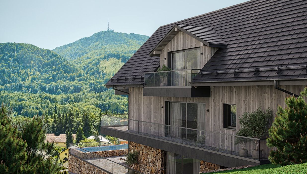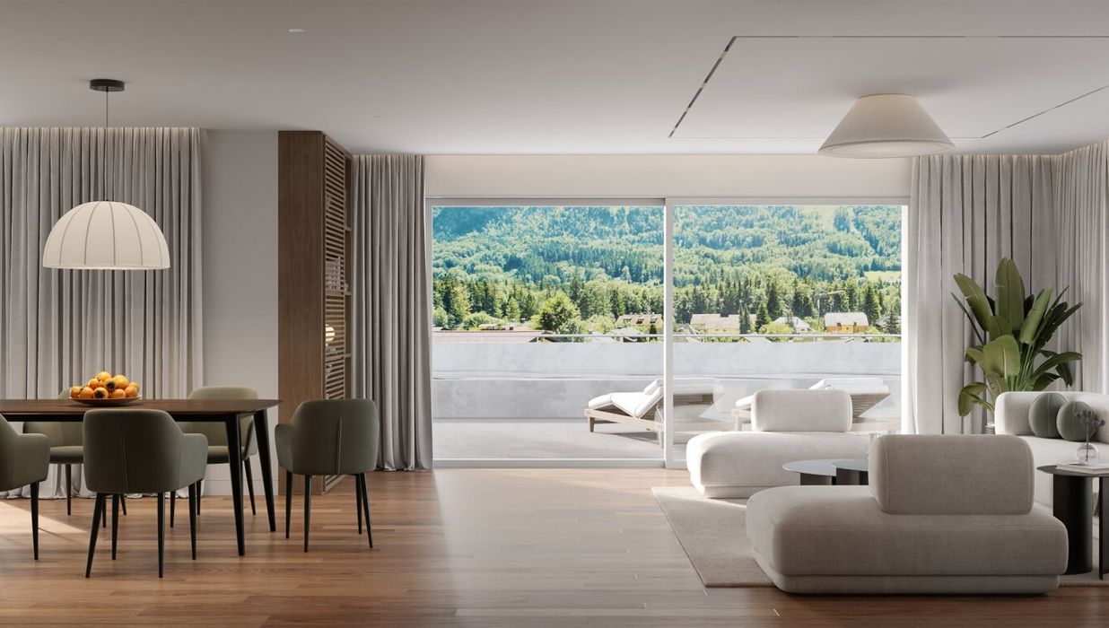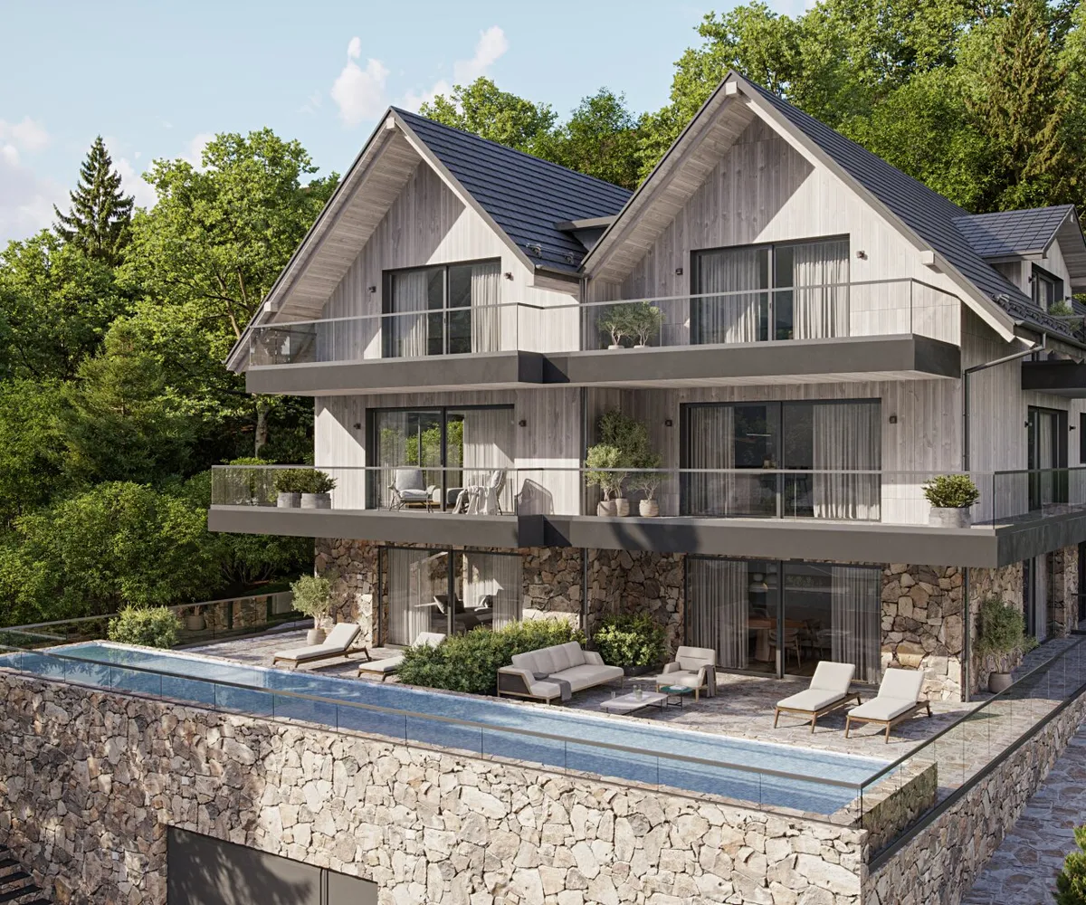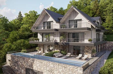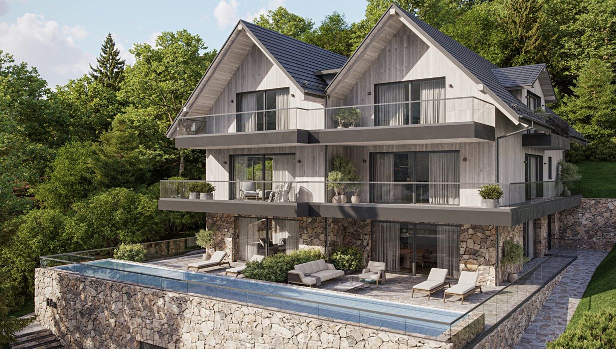 „ZweiWelten“ in Koppl bietet ein Wohnerlebnis der Extraklasse. Großzügige Glasfronten öffnen den Blick auf ein einzigartiges Bergpanorama. In den Abendstunden genießen Sie den Sonnenuntergang in der Natur und entspannen in ihrem eigenen Spa-Bereich. Die Ausstattung unserer Wohnungen ist kompromisslos auf Luxus ausgerichtet: Großzügige, lichtdurchflutete Räume, hochwertige Bodenbeläge, exklusive Bäder, Sauna, Pool und ein Whirlpool sorgen für Ihr persönliches Wohlbefinden. Stilvolle Eleganz verbindet sich hier mit höchstem Wohnkomfort. Jede der drei exklusiven Wohneinheiten ist selbstverständlich barrierefrei und bietet Terrassen und Freiflächen für Ihr eigenes Stück Himmel auf Erden…