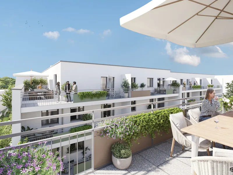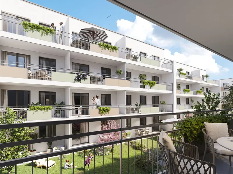 Die ca. 5,8 m² große, verglaste Loggia ist direkt ans Schlafzimmer angebunden und wird rasch zu Ihrem Lieblingsplatz: Ob sonniger Frühstücksort oder ruhiger Abendplatz – hier lebt sich‘s mit Leichtigkeit.
