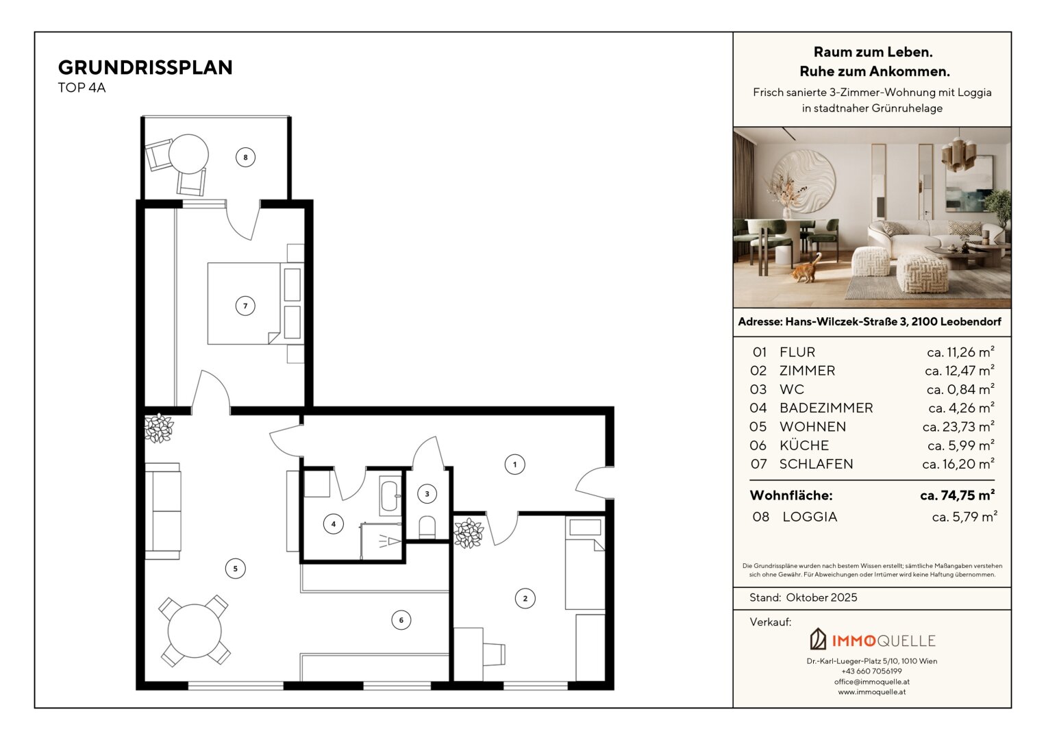 Die Wohnung liegt im ersten Obergeschoß eines gepflegten Hauses und wird noch in diesem Jahr 2025 umfassend kernsaniert – inklusive neuer Sicherheitstür, hochwertiger Böden und erneuerter Haustechnik. Mit rund 80,5 m² Wohnfläche (inkl. verglaster Loggia) erwartet Sie ein Ort, der modernes Wohnen mit Behaglichkeit verbindet.