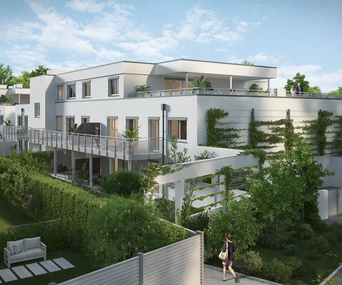 Die Wohnhausanlage besteht aus zwei Stiegen mit je 14 Eigentumswohnungen (Wohnnutzflächen zwischen 74,33 m² und 261,59 m²) mit Gärten und Terrassen oder mit großzügigen Balkonen.
