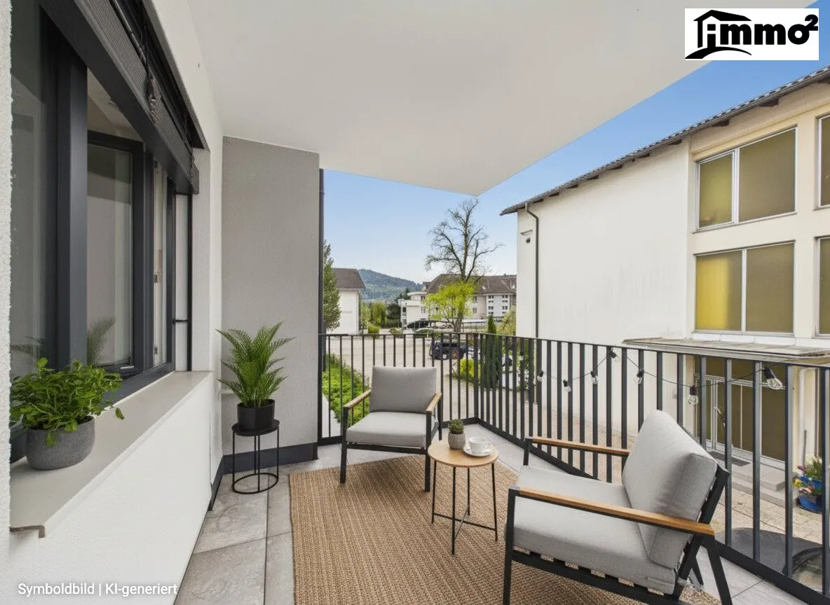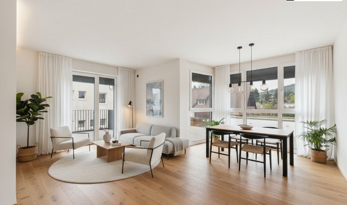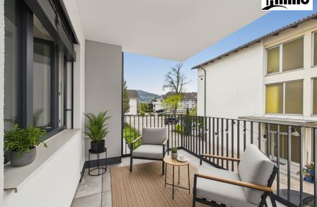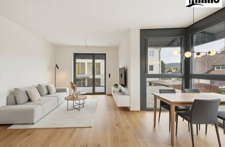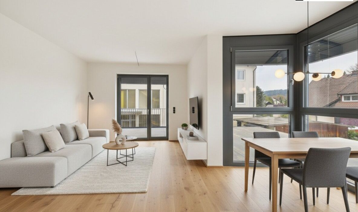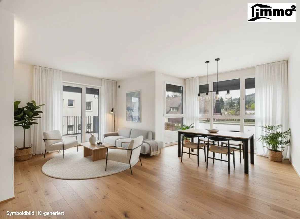 Der Wohn- und Essbereich mit direktem Zugang zum Balkon schafft eine herrliche Wohnatmosphäre und erweitert den Lebensraum ins Freie.