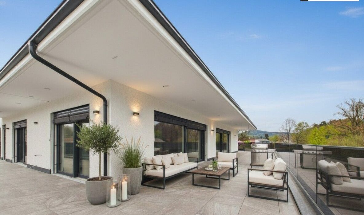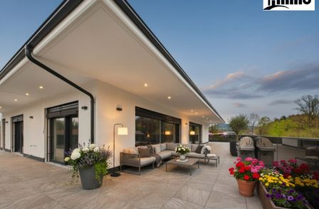 Die weitläufige Dachterrasse wird zum erweiterten Wohnraum: