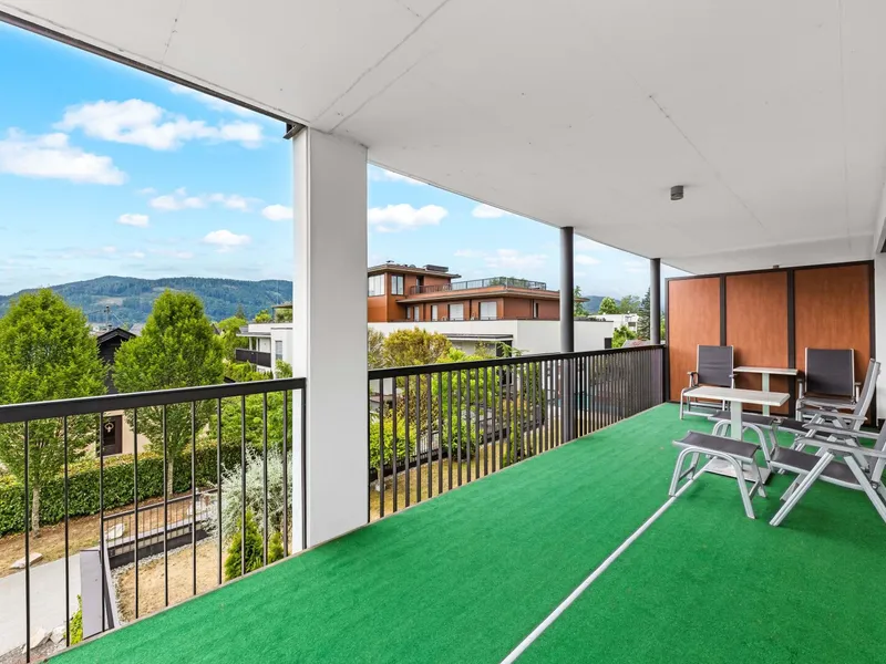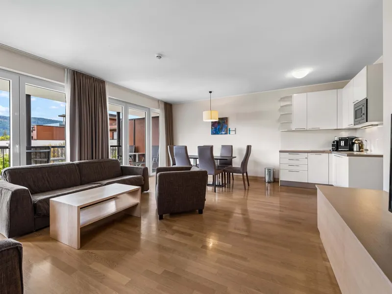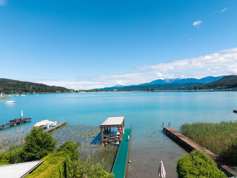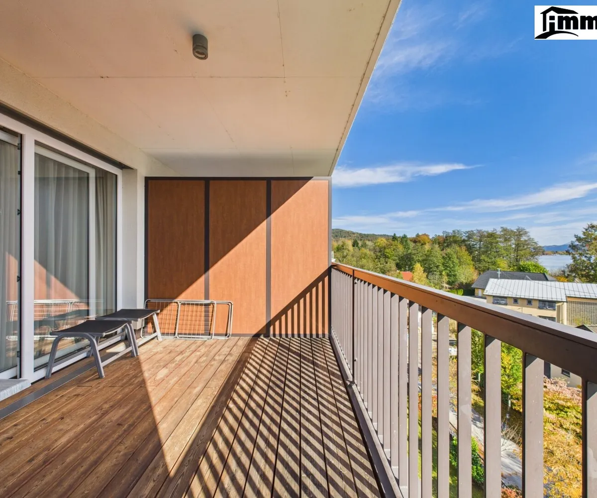 Der sonnige Balkon lädt ein, den Wörthersee in Ruhe zu genießen, während der private Seezugang und die Resort-Annehmlichkeiten für Urlaubsflair das ganze Jahr sorgen.