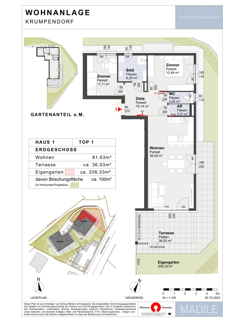 Die Wohnanlage befindet sich im Westen der Gemeinde Krumpendorf in Richtung Pörtschach. Idyllisch am Waldrand gelegen, verfügt die Anlage darüber hinaus über eine exzellente Infrastruktur: Zwei Supermärkte befinden sich in unmittelbarer Nähe, ebenso wie Bildungseinrichtungen (Krabbelstube, Kindergarten und Volksschule) und ein vielfältiges gastronomisches Angebot (Soleo, Buschenschank Krainer, Fisch Süd, Thalerium, Seegasthaus, Magnolia, etc.).