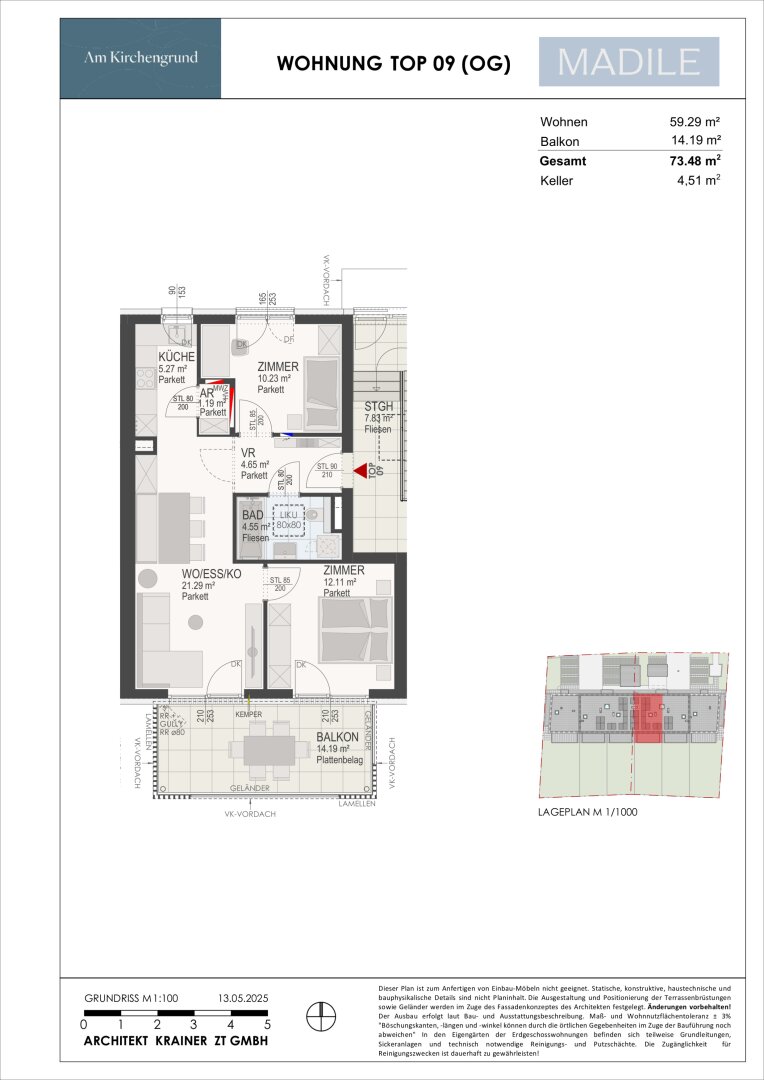 Wohnungsgrößen von 59 m² bis 73 m²