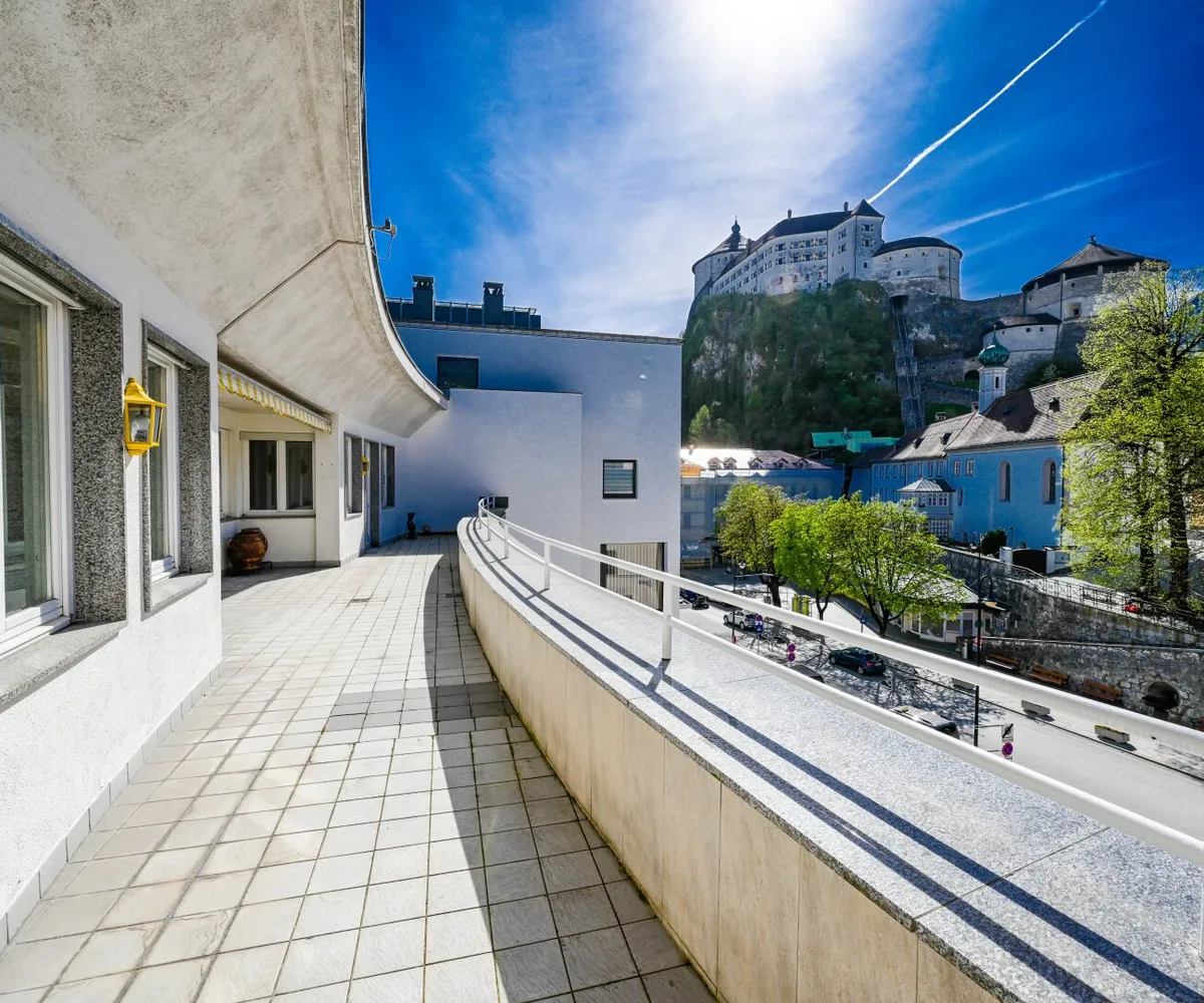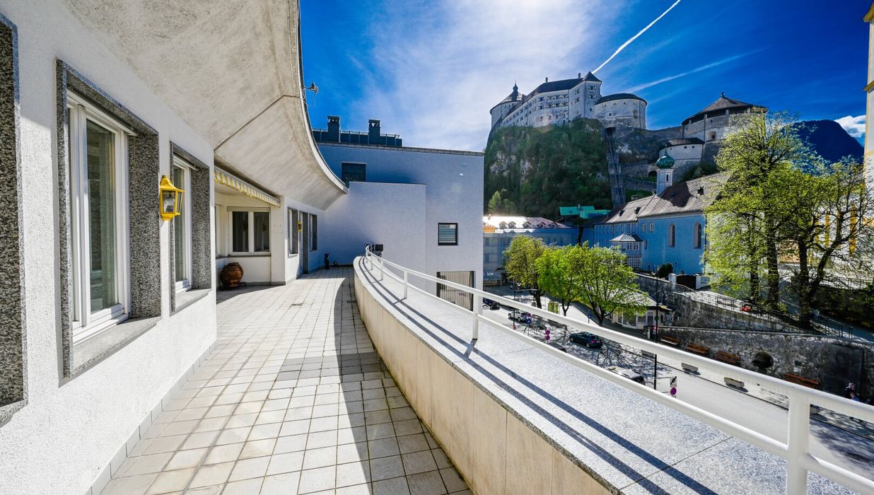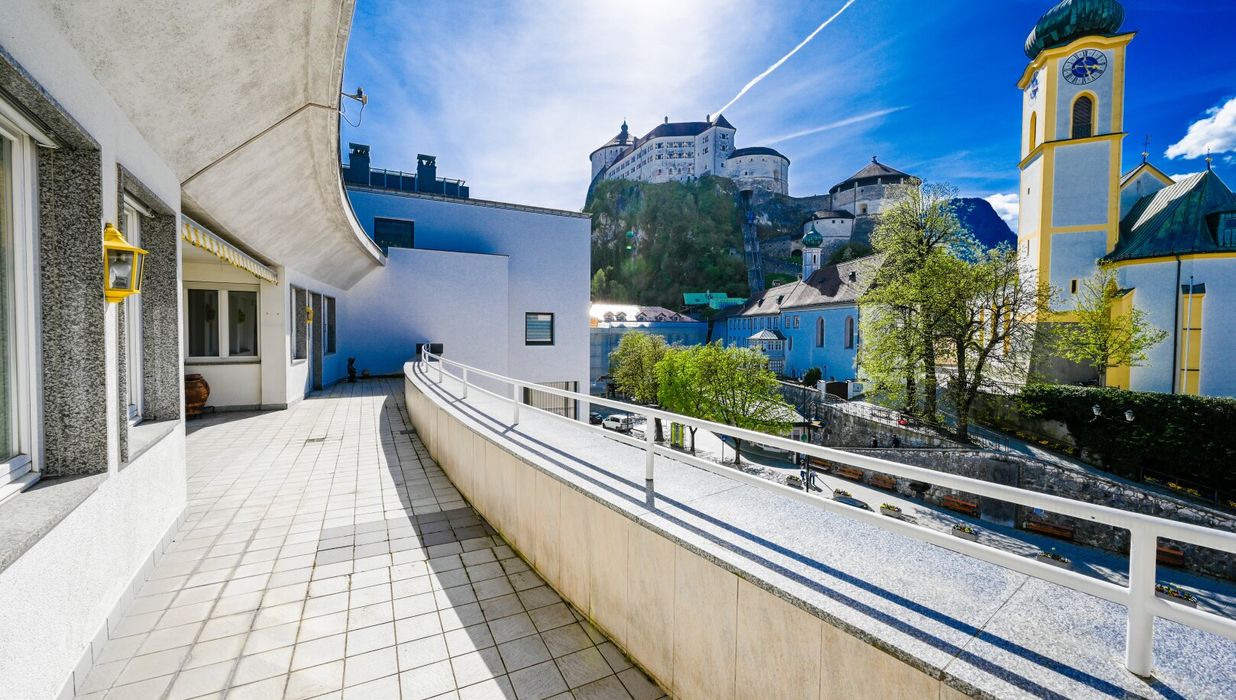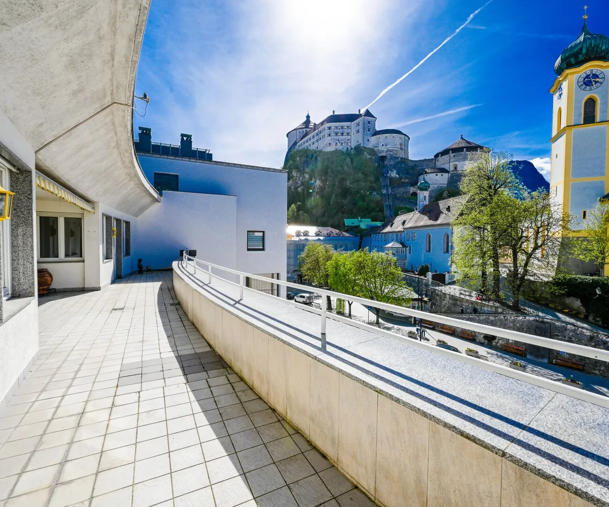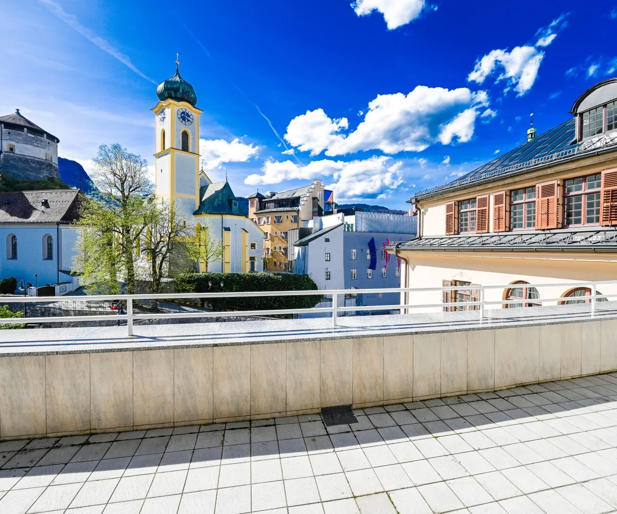Diese 145 m² Penthouse-Eigentumswohnung beeindruckt durch den Ausblick auf die Festung, Kirche und Stadt Kufstein. Auf der 44,5 m² großen Terrasse haben Sie von Mittags bis Abends Sonne. Hier werden Sie viele schöne Stunden im Freien mit Ihrer Familie und Freunden genießen können.