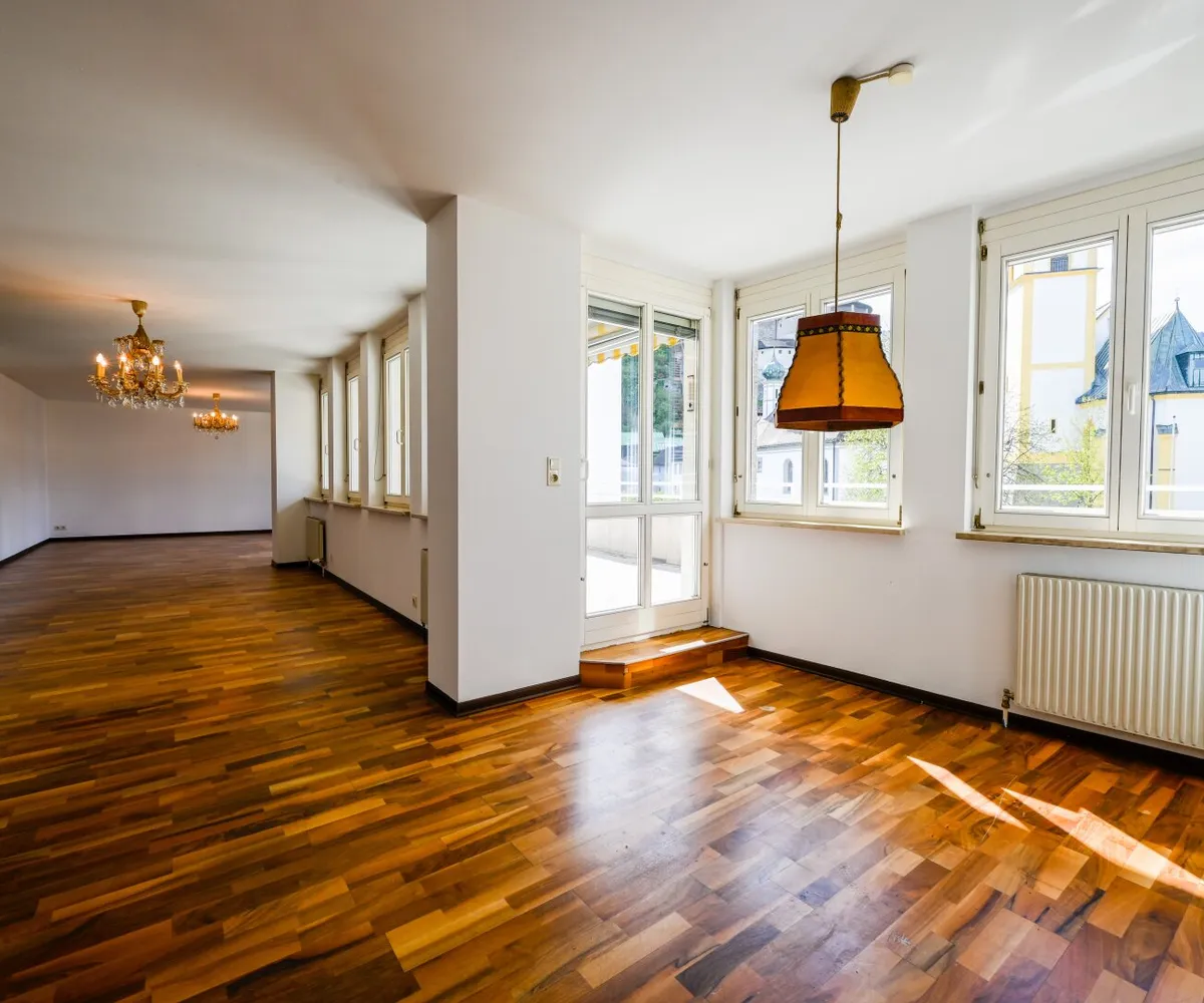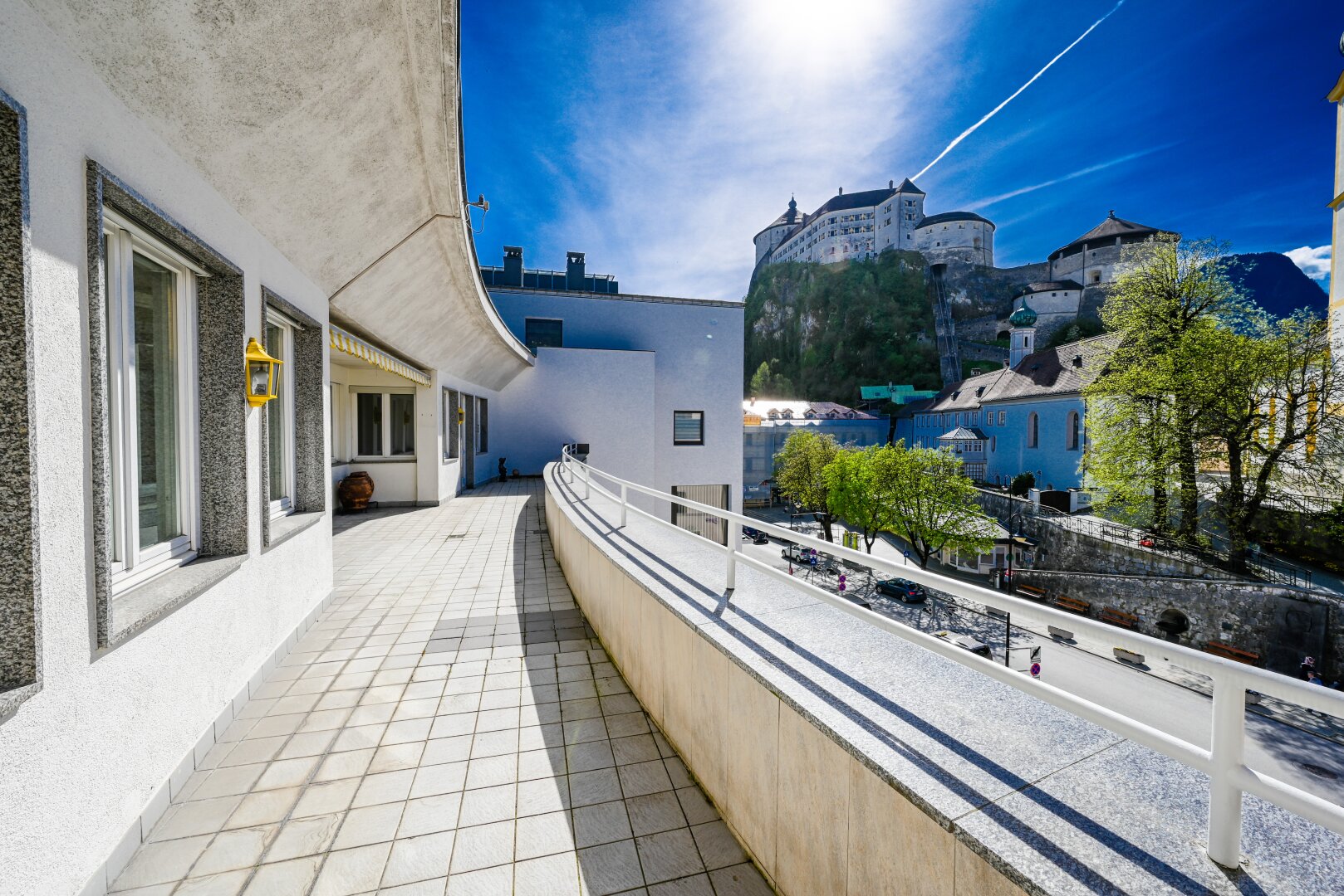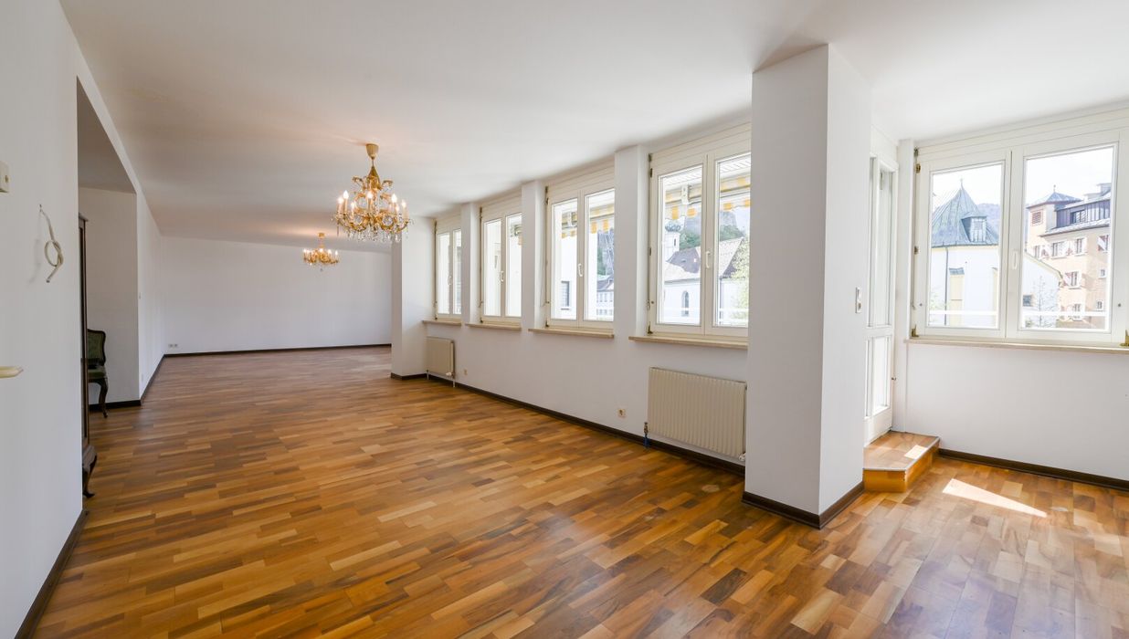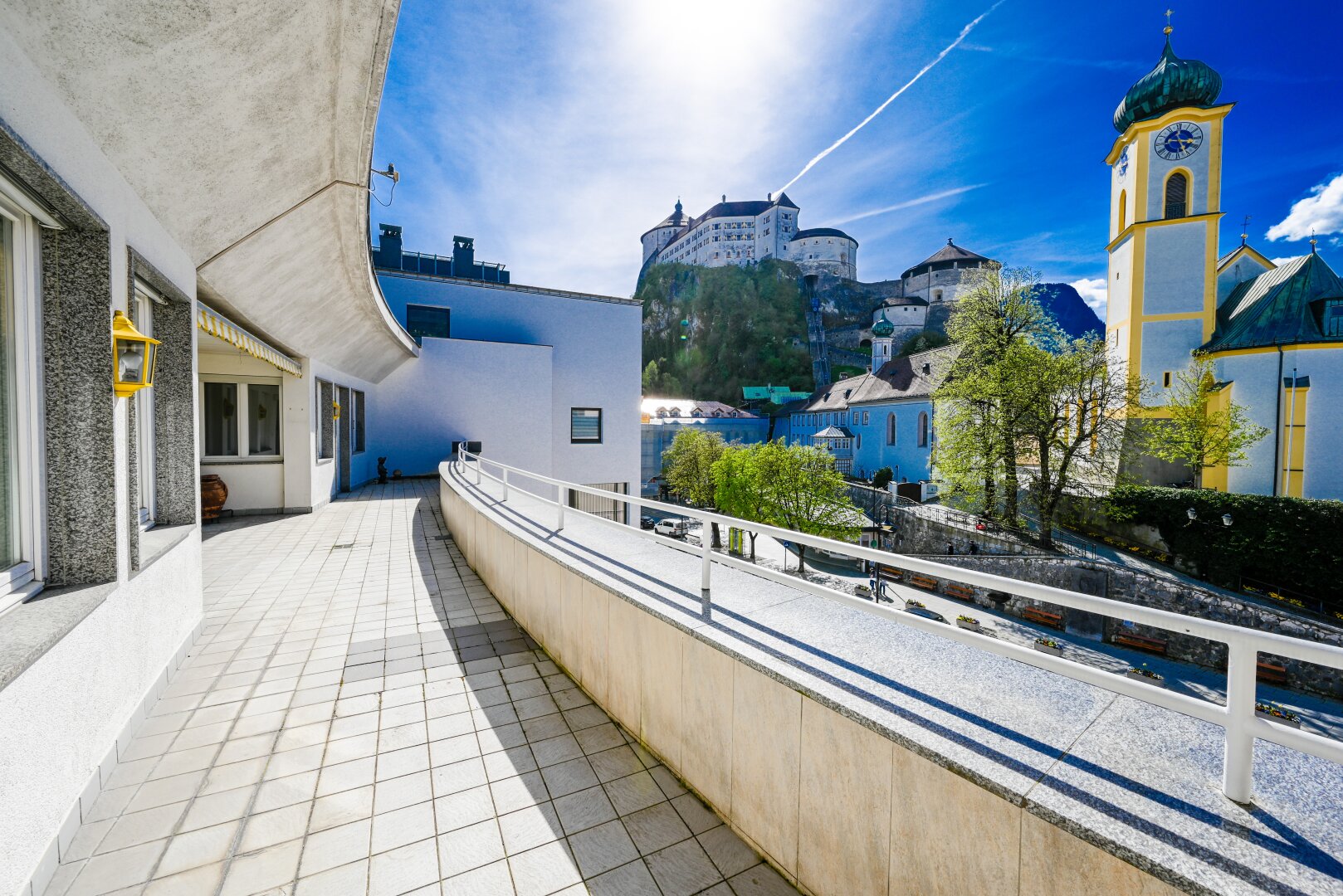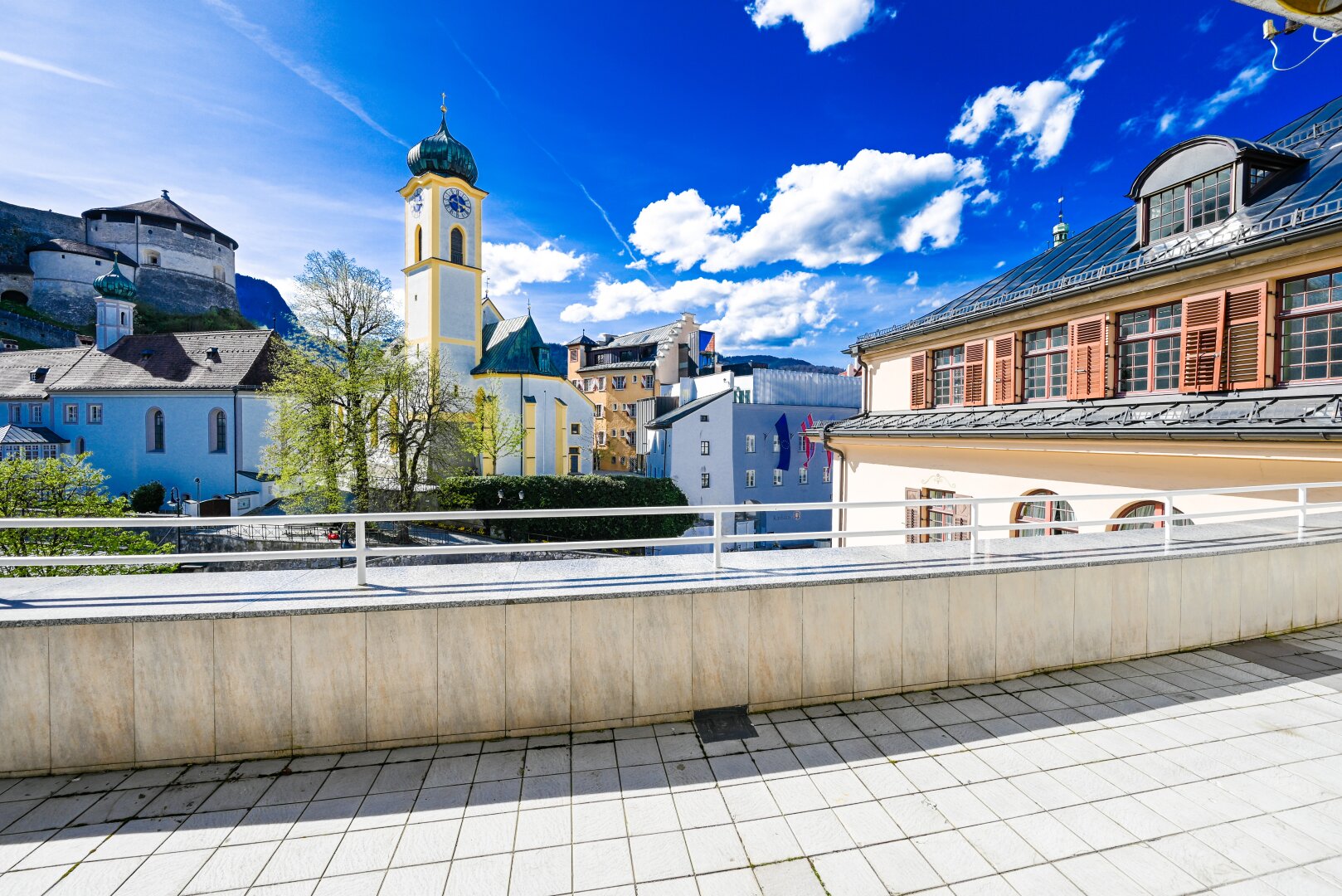 Diese 145 m² Penthouse-Eigentumswohnung beeindruckt durch den Ausblick auf die Festung, Kirche und Stadt Kufstein. Auf der 44,5 m² großen Terrasse haben Sie von Mittags bis Abends Sonne. Hier werden Sie viele schöne Stunden im Freien mit Ihrer Familie und Freunden genießen können.