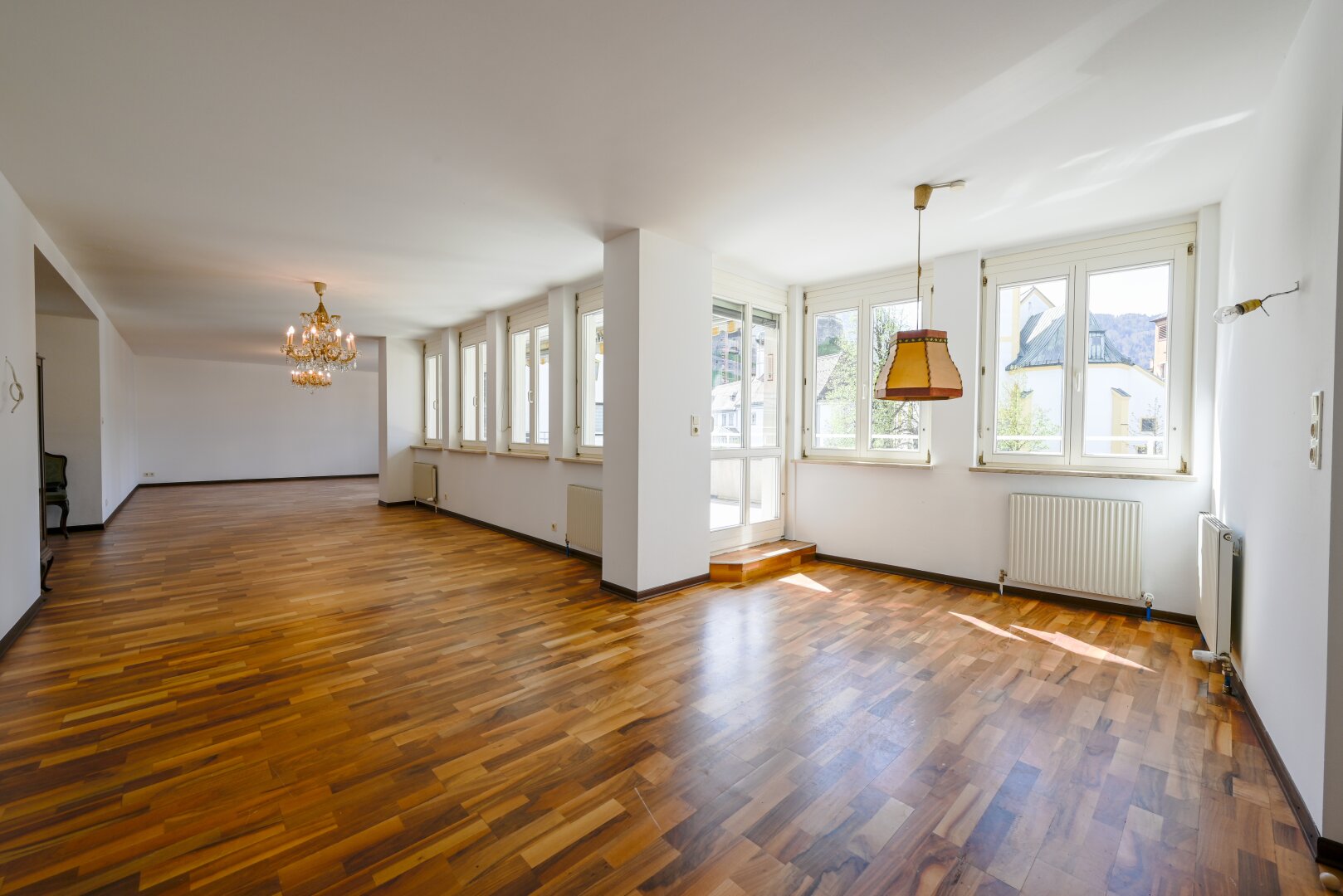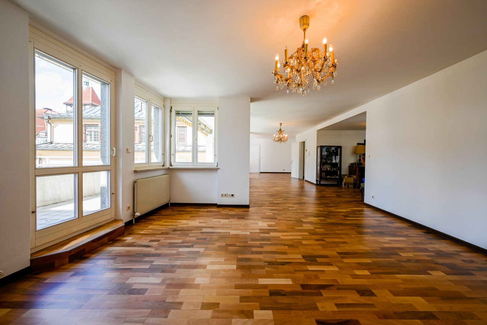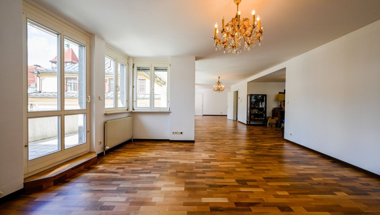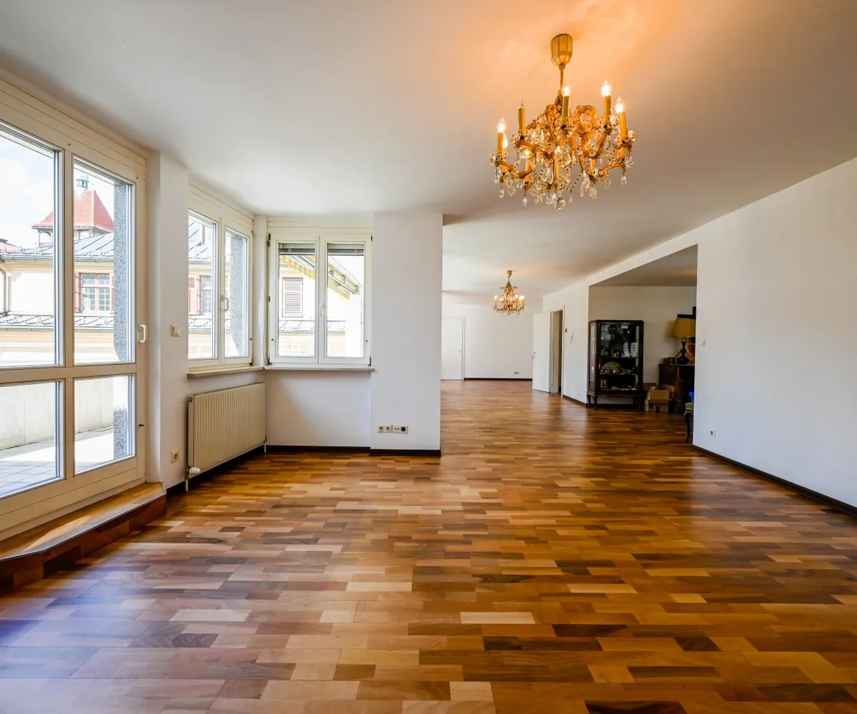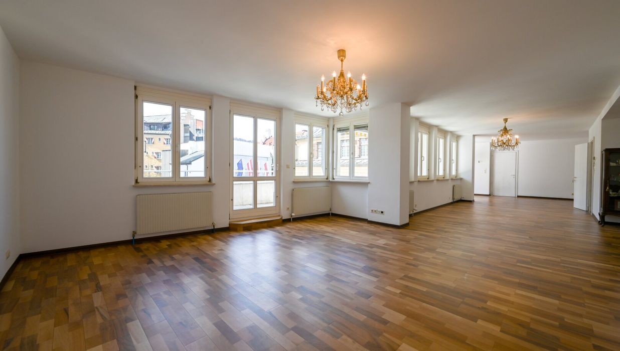 Derzeit ist diese Wohnung mit einer Wendeltreppe mit einer weiteren, ca. 70 m² großen 3-Zimmer-Wohnung verbunden. Diese Wohnung wurde bisher als Gästewohnung bzw. Arbeitsbereich/Büro genützt. Beide Wohnungen können gemeinsam, oder getrennt gekauft werden.
