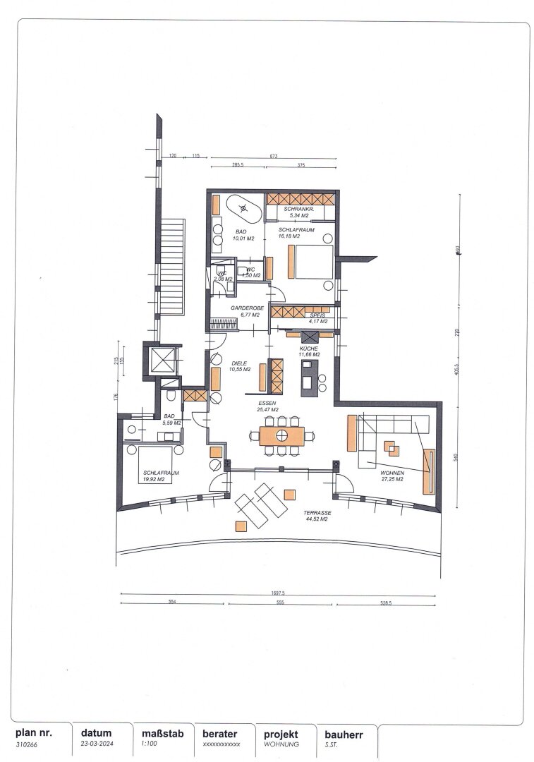 Von der Tiefgarage gelangen Sie mit dem Lift zu Ihrer Penthouse Wohnung. Vom Eingangsbereich gelangen Sie in den großzügigen Wohnbereich. Für den Wohnbereich haben wir für Sie Visualisierugen erstellt, wie die Bereiche Wohnen - Kochen - Essen gestaltet werden können. Vom zentralen Eingangsbereich gelangen Sie zu den beiden Schlafzimmern, mit jeweils direkt zugänglichen Badezimmern. Alle Ihre Ideen können mit einem Planungsbüro individuell besprochen und realisiert werden. Wir haben im Expose einen aktuellen Wohnungsplan und einen Wohnungsplan NEU. Ein Generalunternehmer übernimmt die Ausschreibung und Koordinierung der Umbauarbeiten. Die Wohnung wird Ihnen auf Wunsch schlüsselfertig übergeben.