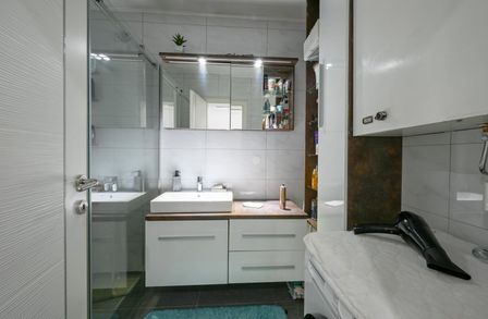 Die Wohnung ist mit modernen Fliesen, Parkett und einer Fußbodenheizung ausgestattet, die für ein angenehmes Raumklima sorgt, egal zu welcher Jahreszeit. Die zentrale Heizungsanlage gewährleistet, dass Sie auch in den kälteren Monaten stets wohlige Wärme genießen können. Das Badezimmer ist mit einer praktischen Dusche ausgestattet, die Ihnen den perfekten Start in den Tag ermöglicht.