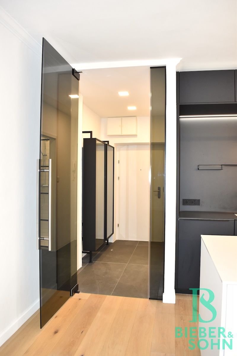 Die im Erdgeschoss gelegene Wohnung, gartenseitig ausgerichtet, besteht aus einem lichtdurchfluteten Wohn-/Esszimmer mit High-End-Design-Küche, einem ruhigen Schlafzimmer, einem extravaganten Wohlfühl-Duschbad mit WC, sowie dem ansprechenden Entrée.