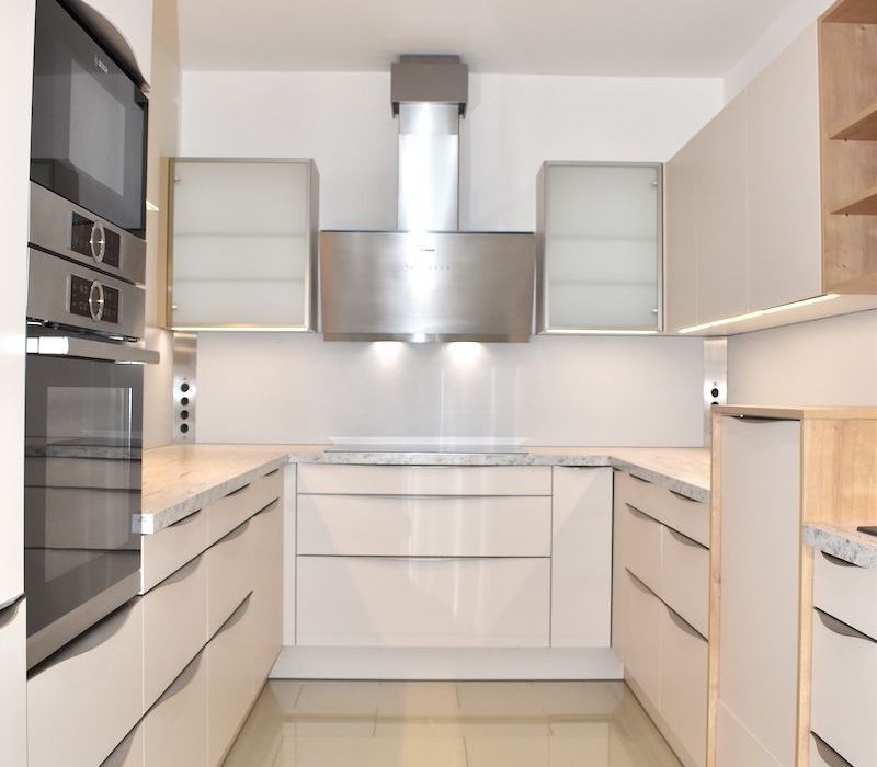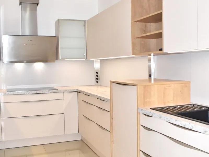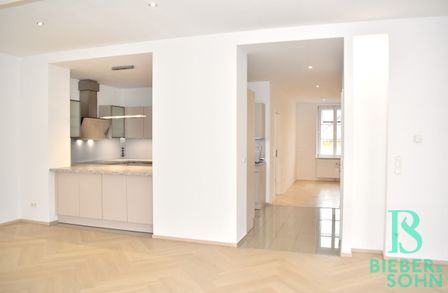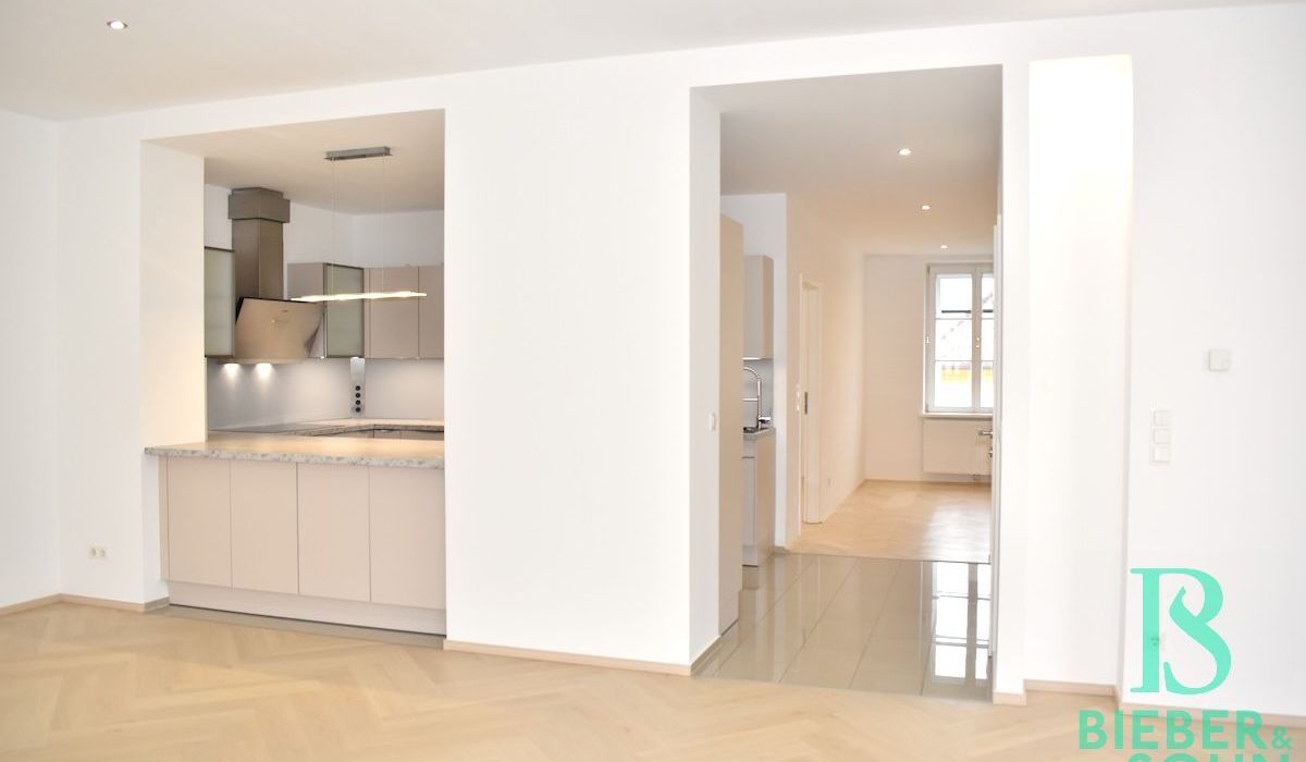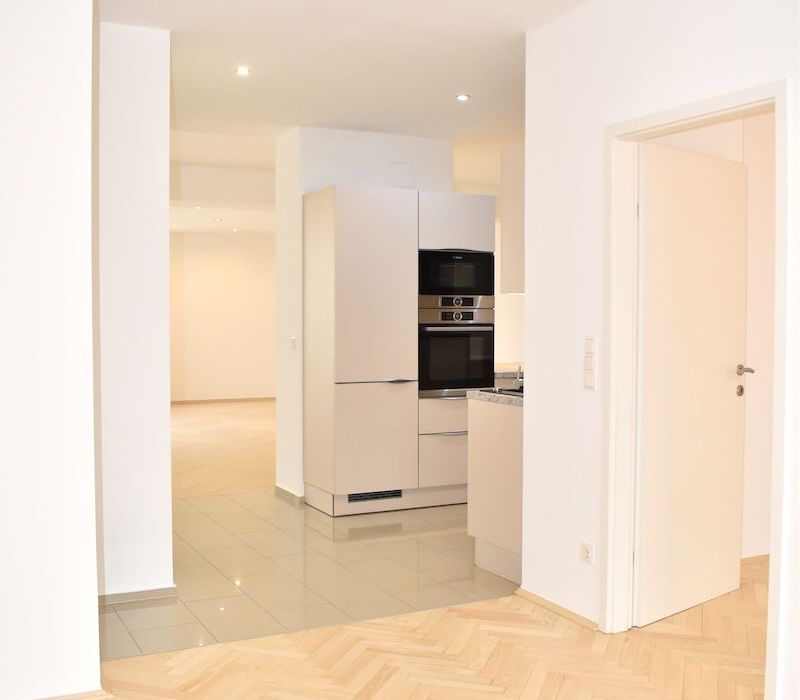 Eine qualitativ hochwertige EWE Einbauküche Mod. Nuova in der angesagten Farbe sand-matt, neuwertige Kücheneinbaugeräte von BOSCH (Kühl- Gefrierkombination, Induktionsherd, Backrohr, Mikrowellenherd, Dunstabzug, höher gestellter Geschirrspüler), exklusiv von der Tischlerei Rauchenzauner ausgestattetes Bad mit Wanne & Dusche & Doppelwaschbecken, sowie Waschmaschinen- und Trockneranschluss, neues und restauriertes Fischgrätparkett in den Wohn- und Schlafräumen, schönes Feinsteinzeug im Vorzimmer, sowie in den Sanitärräumen, eine Kombination von vorgesetzten Kastenfenstern und moderne doppelglasige Isolier-Kunststofffenster von KAPO, edle französische Balkontüren im Wohnzimmer von ROTO, Insektengitter, Innenrollos, Gardinenschienen mit Flächenvorhänge, Türen aus Holz, Fußbodenheizung mit Wandthermostat, beziehungsweise teilweise Heizkörper mit Thermostat, hydraulischer Aufzug, Kabel TV & Internet Anschlüsse im Wohn- und Schlafzimmer, Spot-Lichter in fast der gesamten Wohnung, Gegensprechanlage und ein Telefonanschluss komplettieren die exklusive Ausstattung dieser repräsentativen Wohnung.