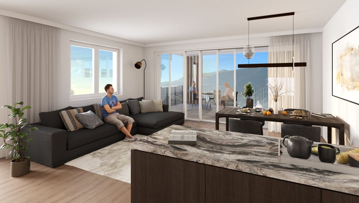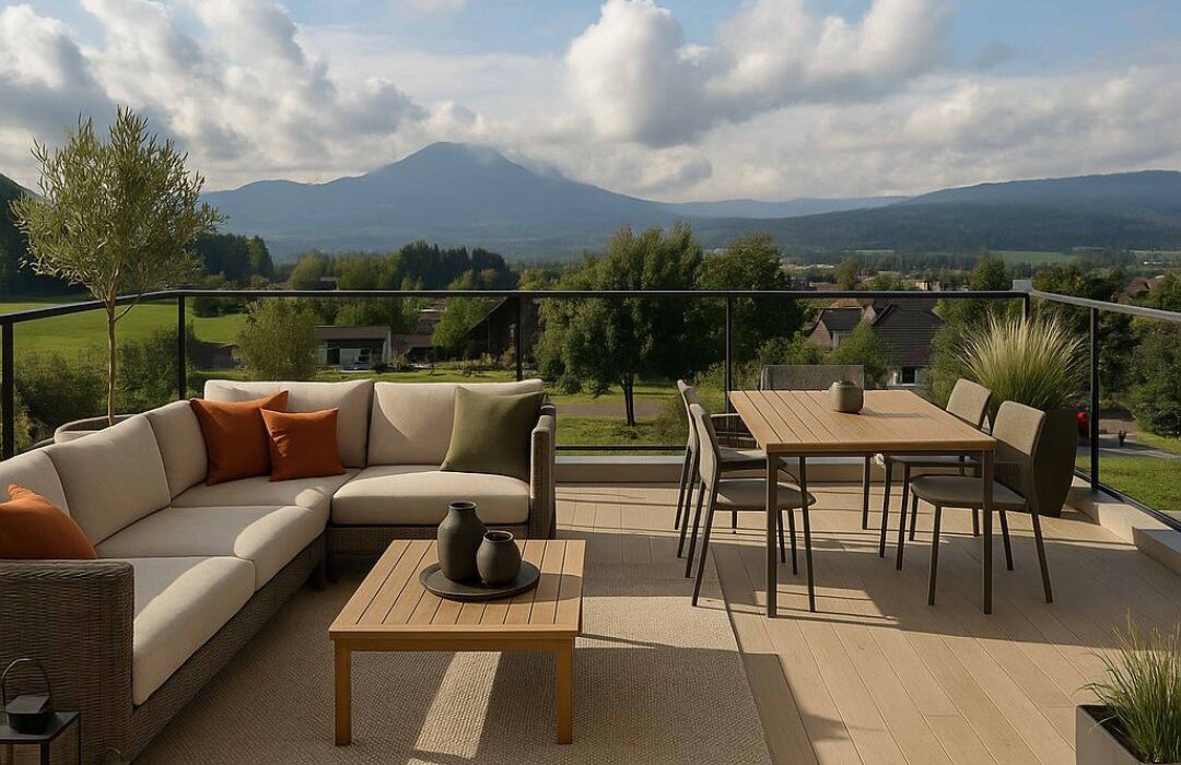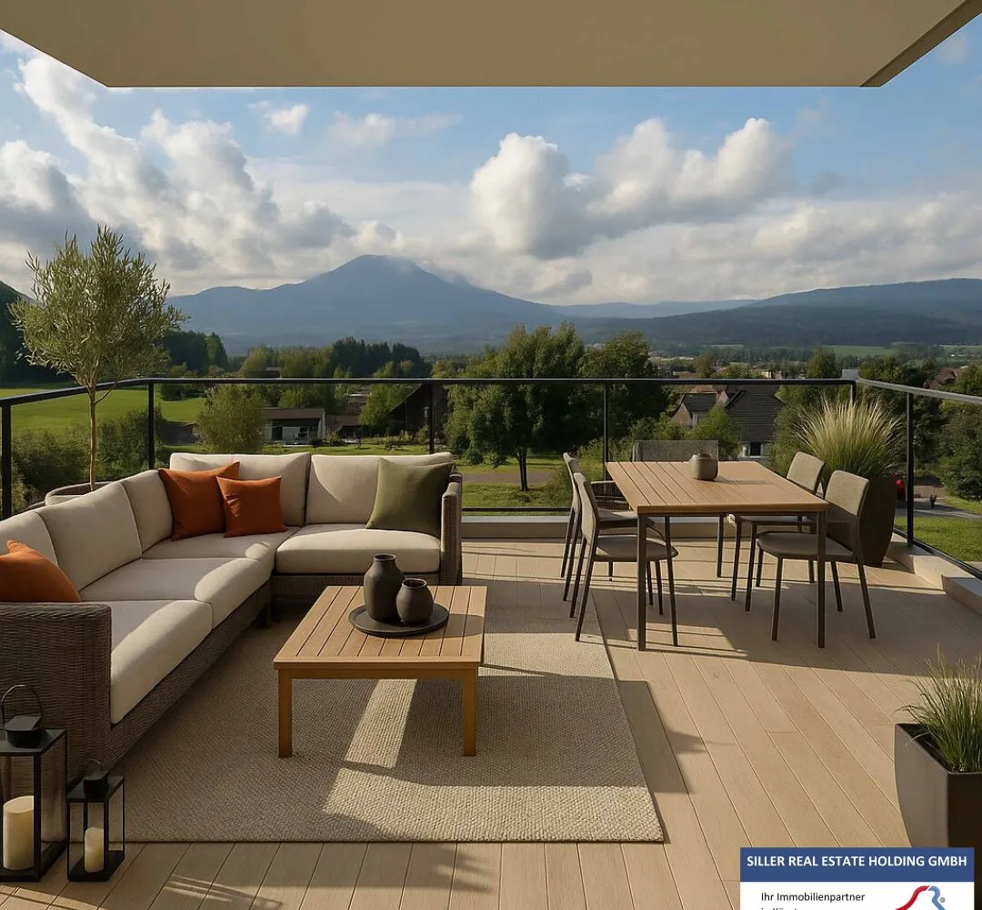 Die 22 m² große Terrasse eröffnet Ihnen einen traumhaften Blick auf die umliegende Landschaft.