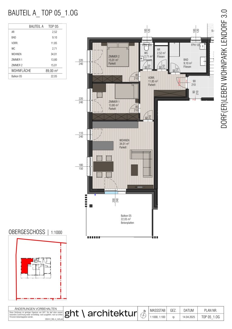 Top A5: 3 Zimmer | 89 m² WFL | 22 m² Terrasse | Kaufpreis:€ 420.000,-