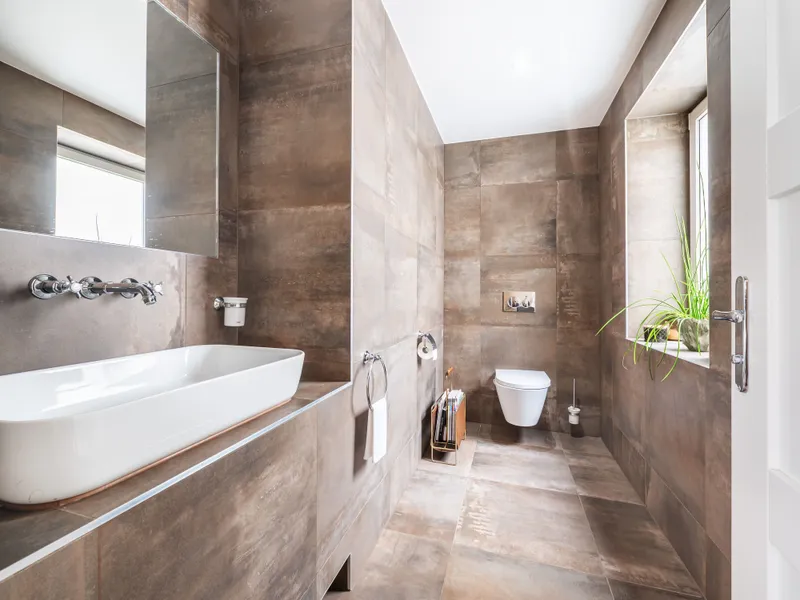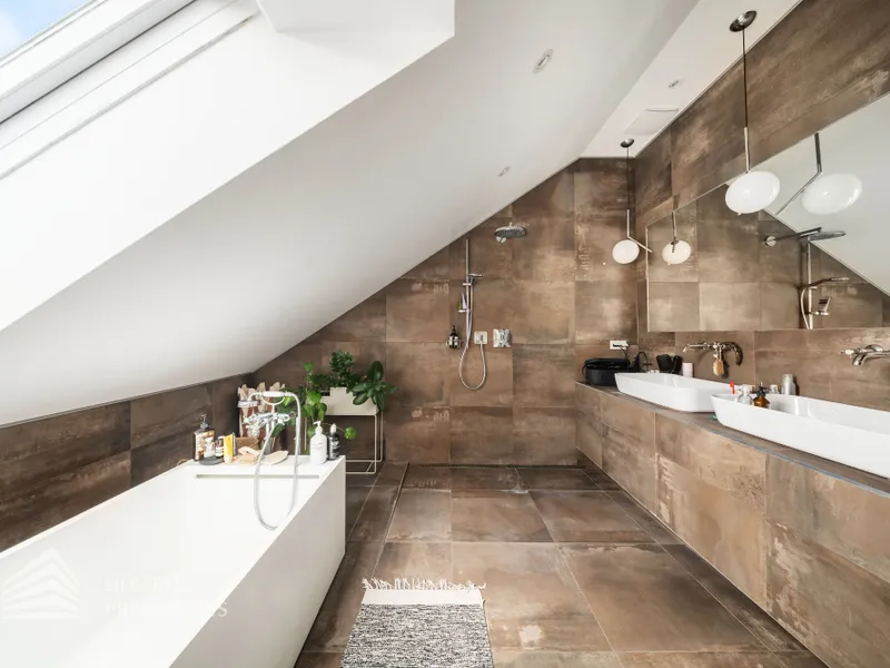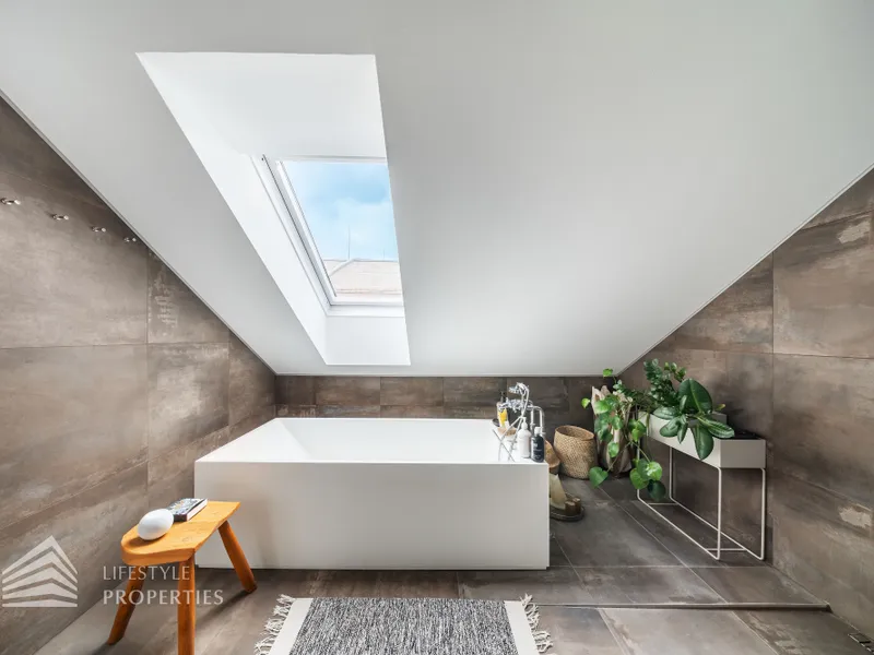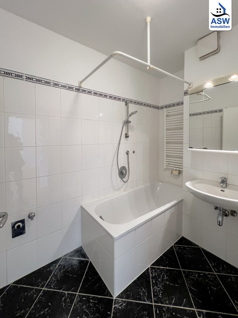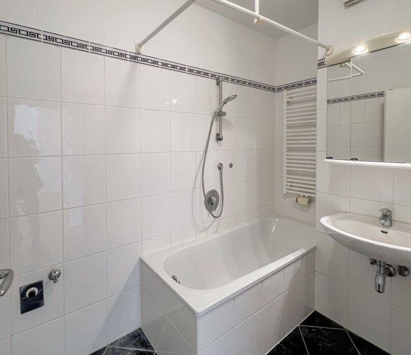 - Badezimmer mit Badewanne und Waschmaschinenanschluss, WC separat