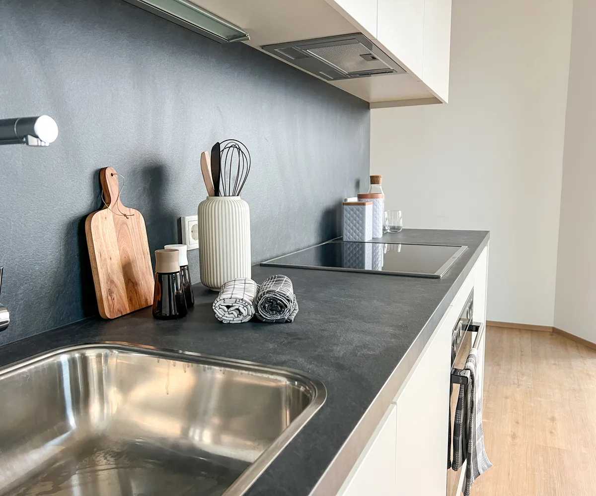 Das High Five begeistert mit großzügigen Fensterflächen, die ab dem 5. OG atemberaubende Ausblicke auf die Stadt bieten. Jedes Apartment ist mit einer hochwertigen Einbauküche ausgestattet und bietet Ihnen mit Fußbodenheizung und einem eleganten Design-Vinylboden ein erstklassiges Wohnambiente und ein behagliches Raumklima. Jede Wohnung verfügt über eine private Außenfläche in Form von Loggia, Balkon oder einem Eigengarten.