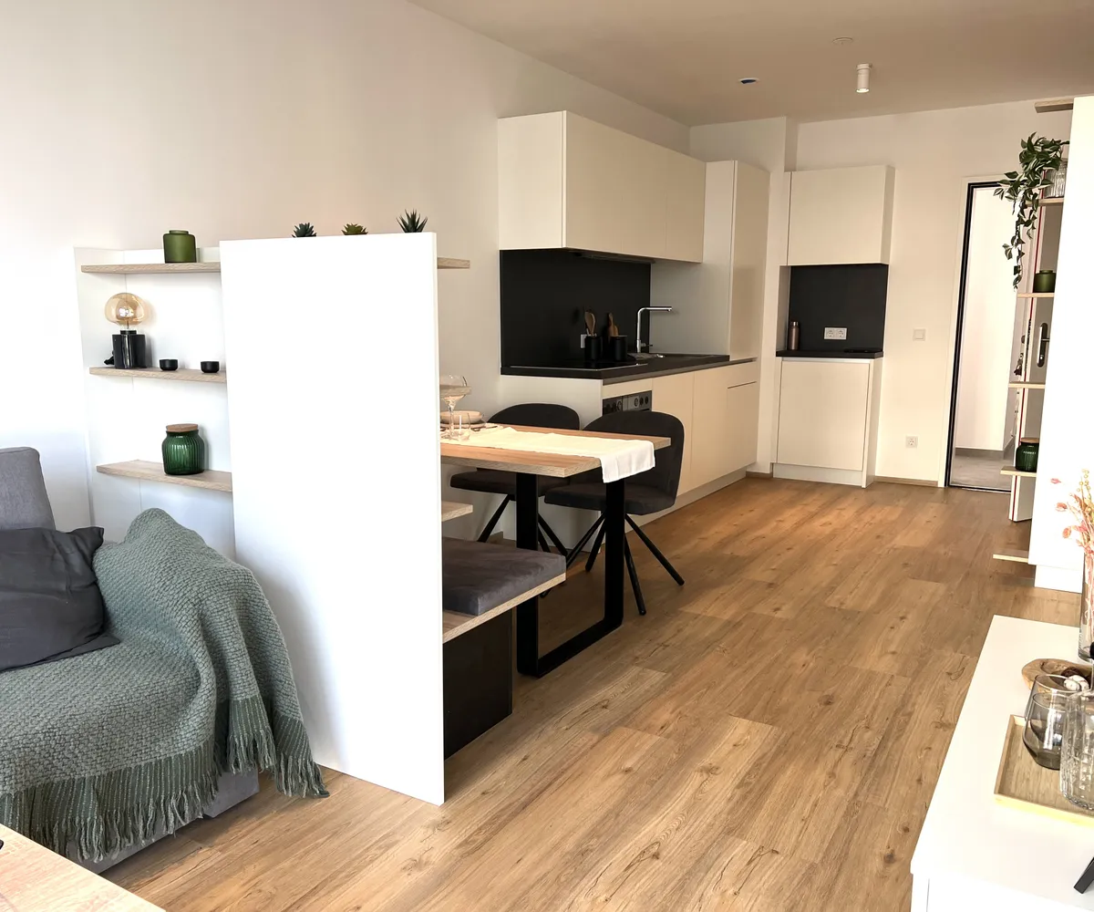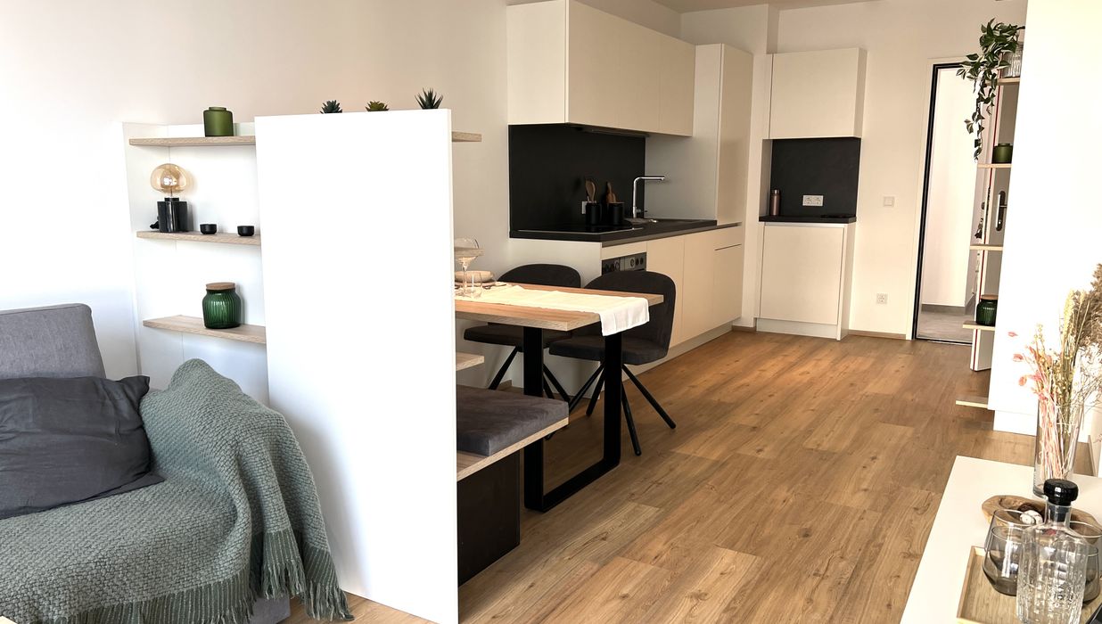Das High Five begeistert mit großzügigen Fensterflächen, die ab dem 5. OG atemberaubende Ausblicke auf die Stadt bieten. Jedes Apartment ist mit einer hochwertigen Einbauküche ausgestattet und bietet Ihnen mit Fußbodenheizung und einem eleganten Design-Vinylboden ein erstklassiges Wohnambiente und ein behagliches Raumklima. Jede Wohnung verfügt über eine private Außenfläche in Form von Loggia, Balkon oder einem Eigengarten.