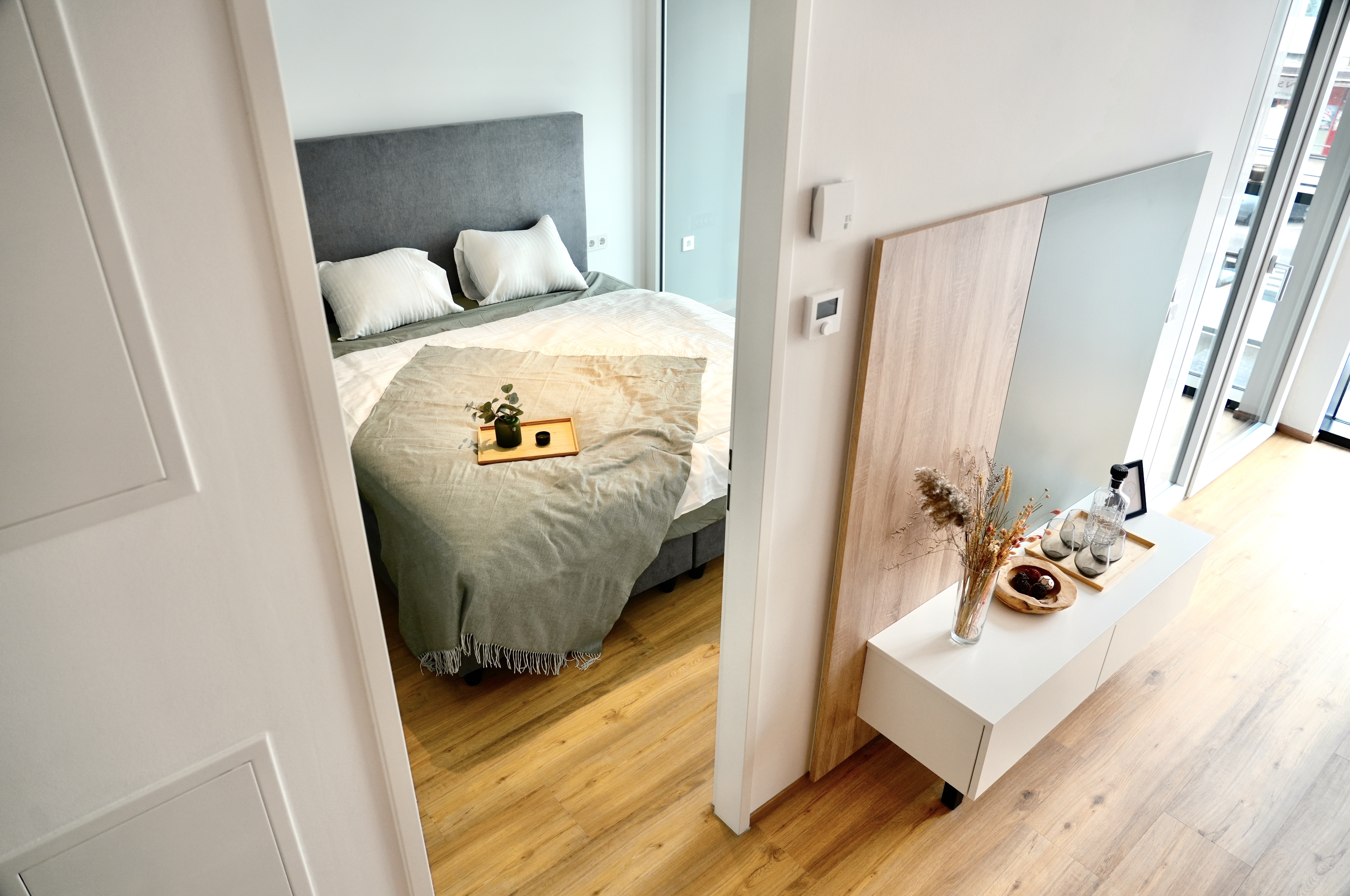 Bei den Fotos handelt es sich um die Musterwohnung. Die Wohnung wird unmöbliert vermietet.