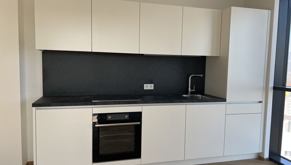 Jede Wohnung ist mit einer hochwertigen Einbauküche, Design-Vinylboden, Fußbodenheizung und einer Loggia ausgestattet.