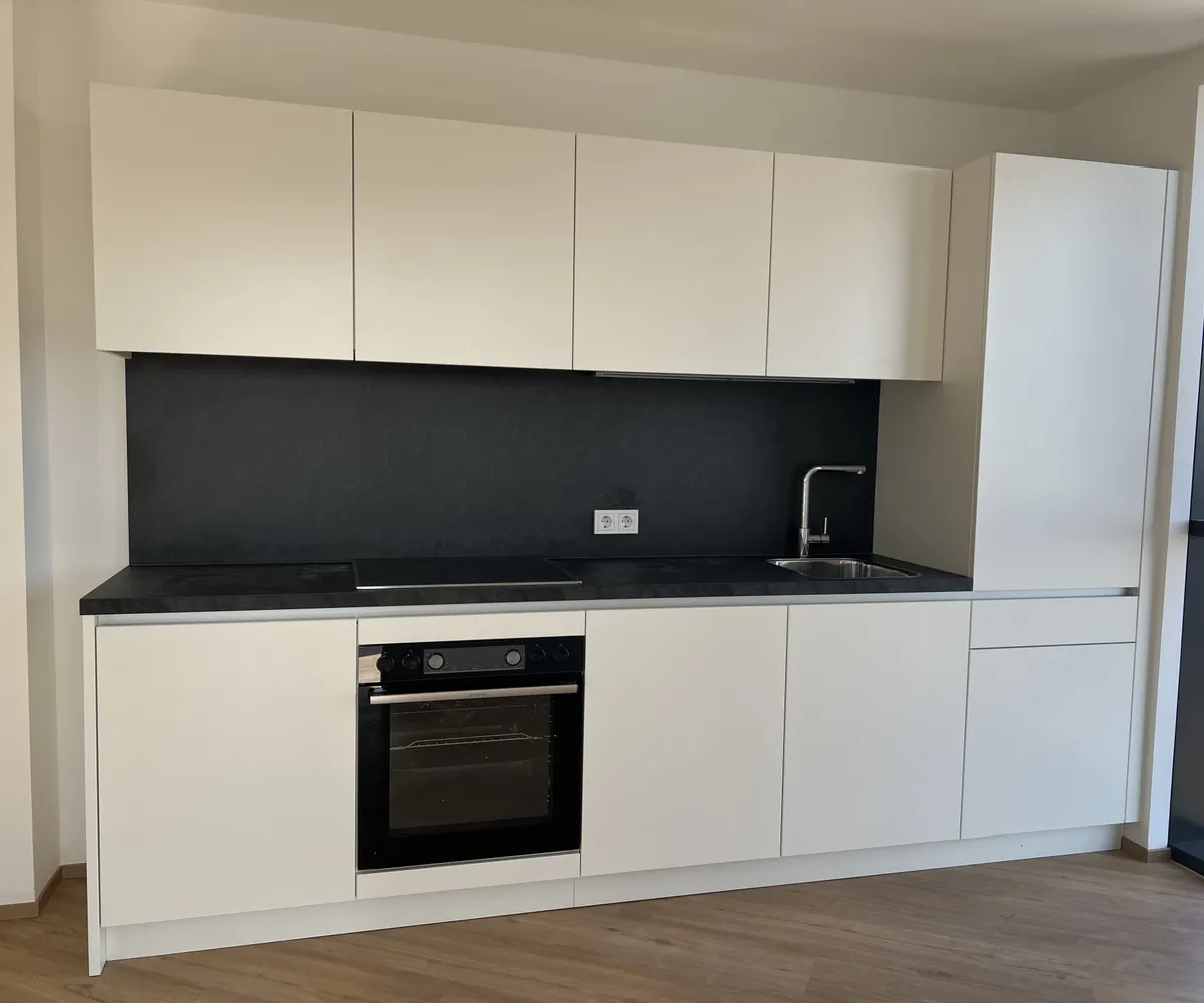 Jede Wohnung ist mit einer hochwertigen Einbauküche, Design-Vinylboden, Fußbodenheizung und einer Loggia ausgestattet.