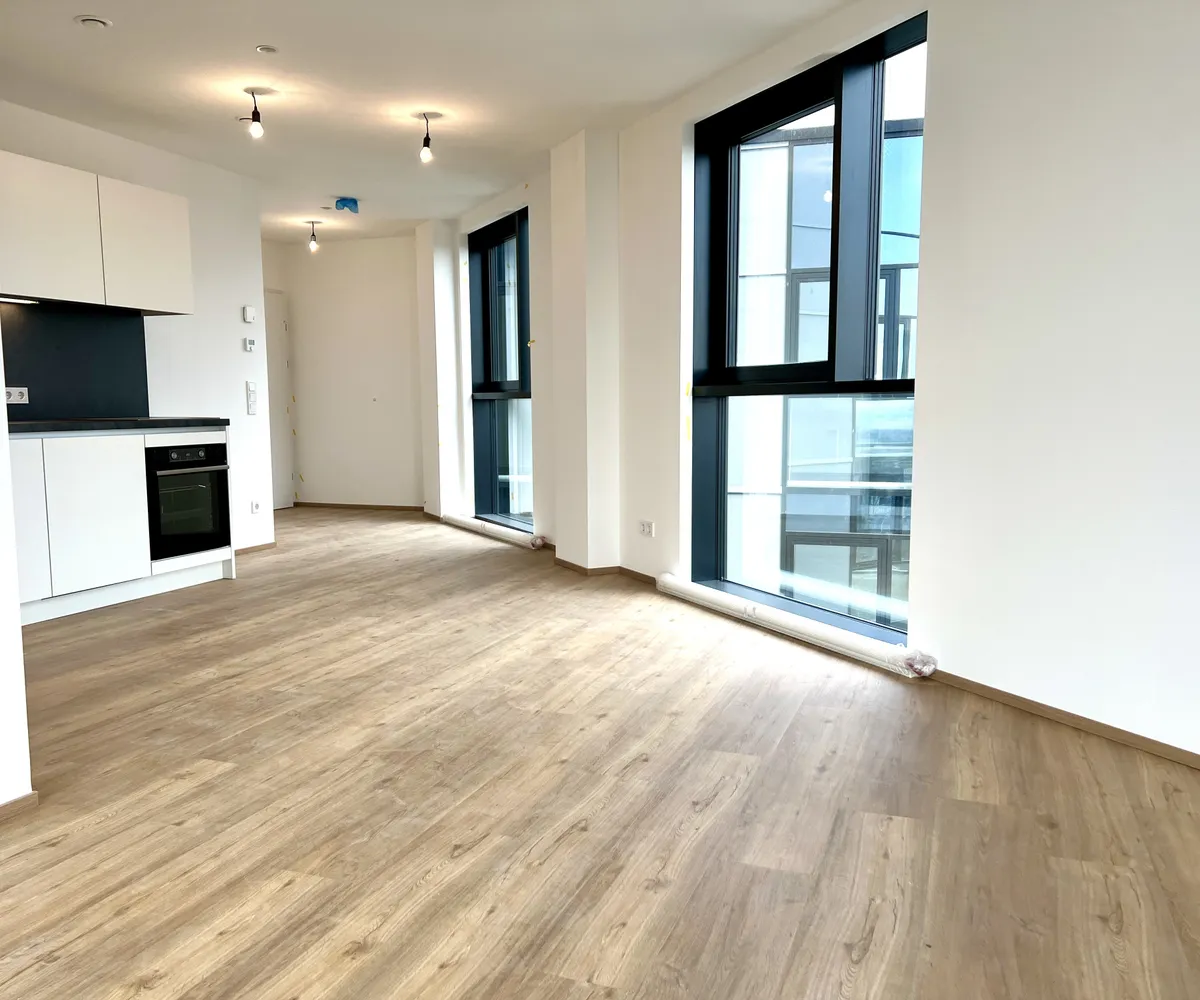 Jede Wohnung ist mit einer hochwertigen Einbauküche, Design-Vinylboden, Fußbodenheizung und einer Loggia ausgestattet.